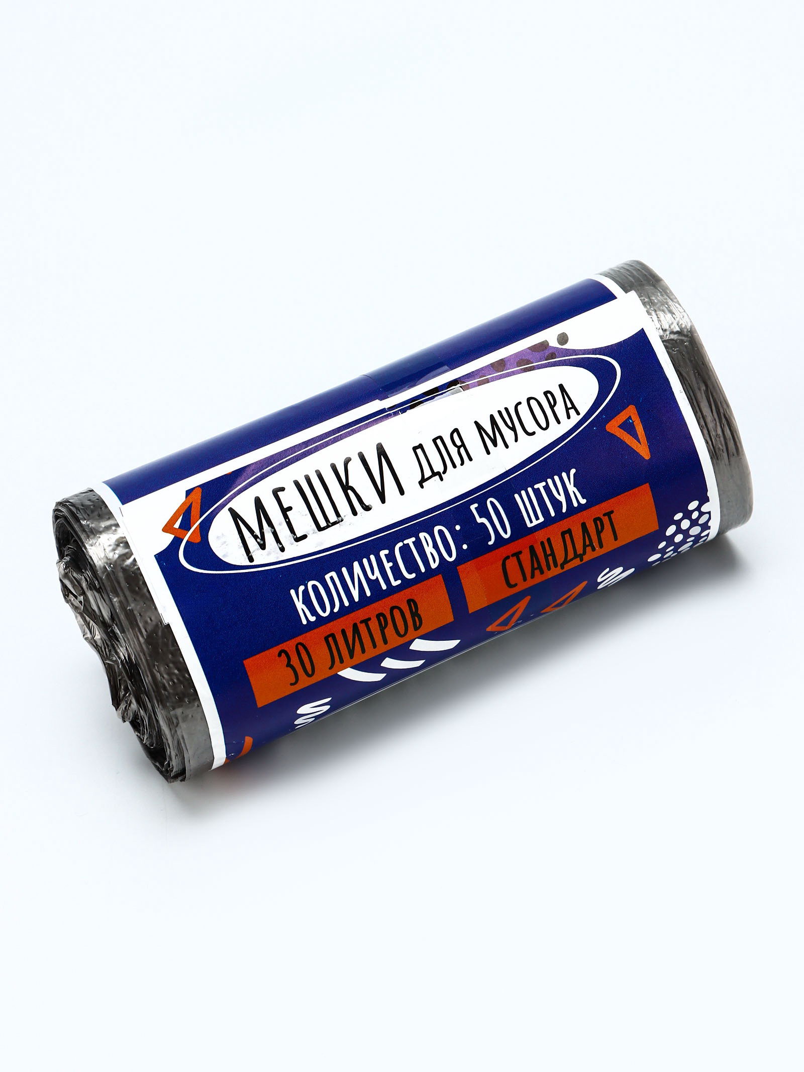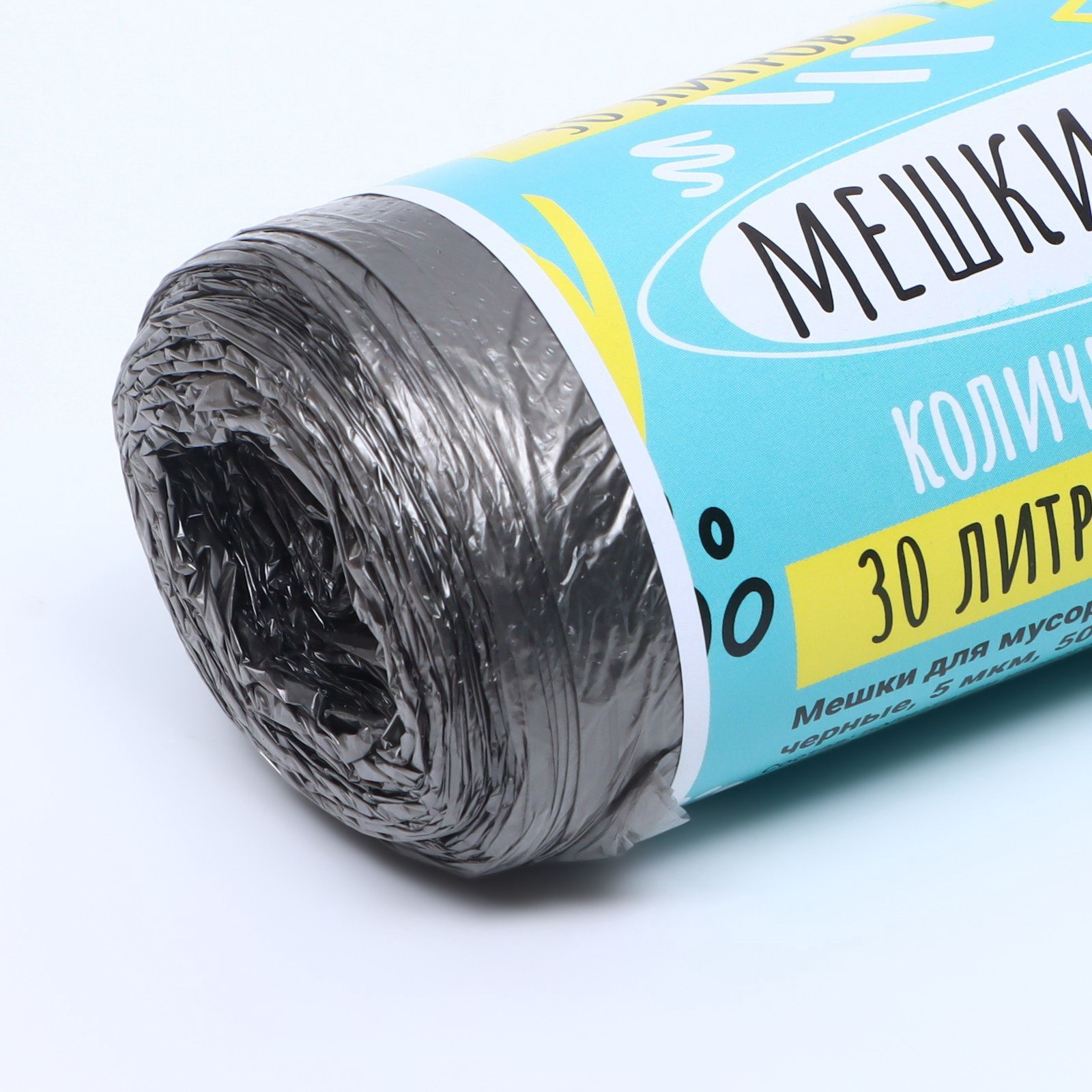 Мешки для мусора в рулоне UpakLand=30 л, черные, ПНД, толщина 5 мкм, 50 шт., 30000 мл., UPAK LAND, Россия