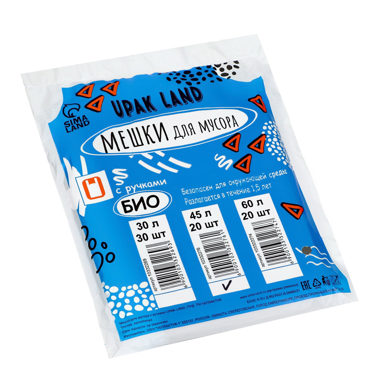 Мешки для мусора с ручками 45 л ПНД, толщина 10 мкм, набор 20 шт., 45000 мл., UPAK LAND, Россия