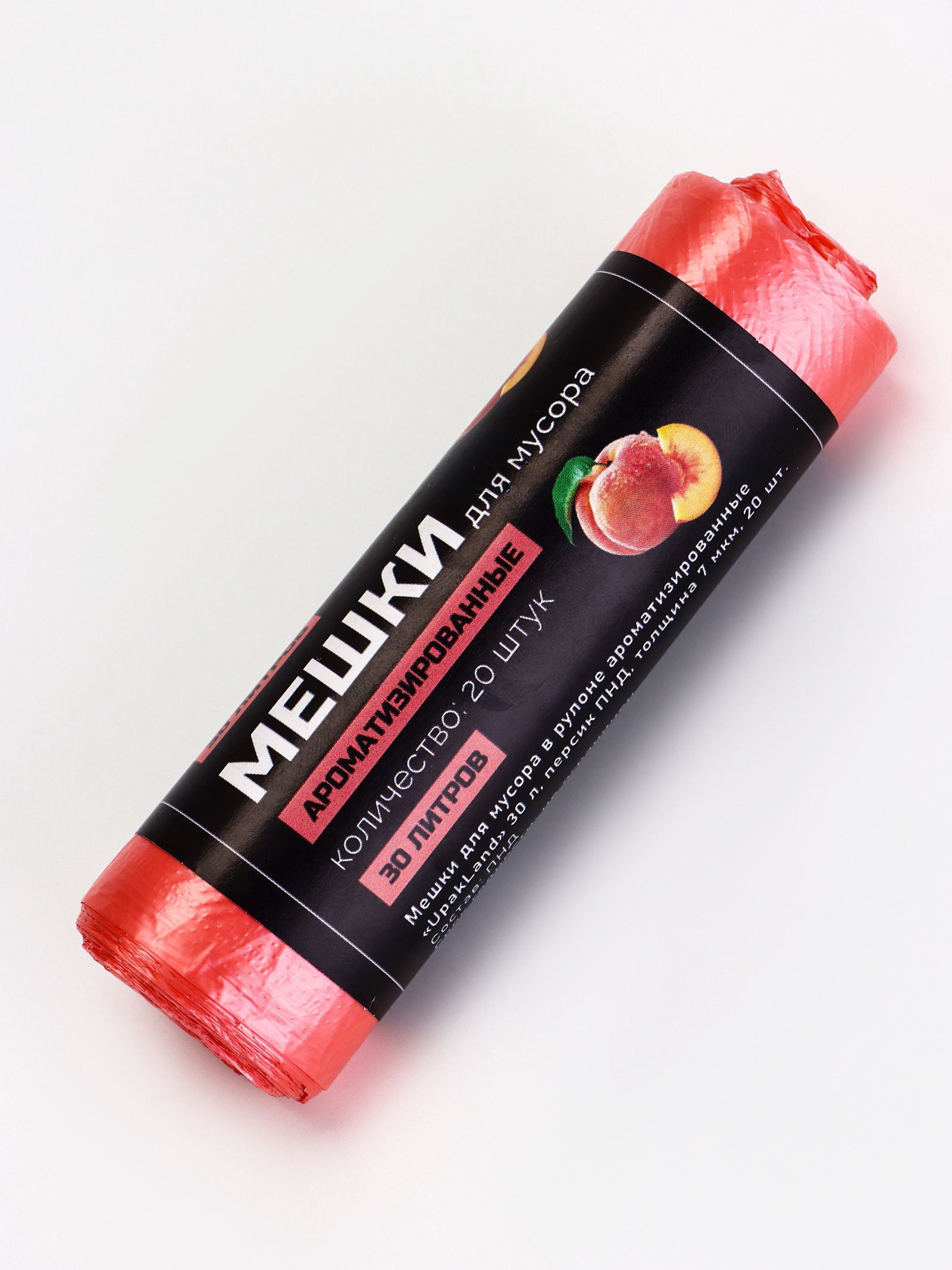 Мешки для мусора в рулоне ароматизированные UpakLand=30 л, ПЕРСИК ПНД, толщ 7 мкм, 20 шт., 30000 мл., UPAK LAND, Россия