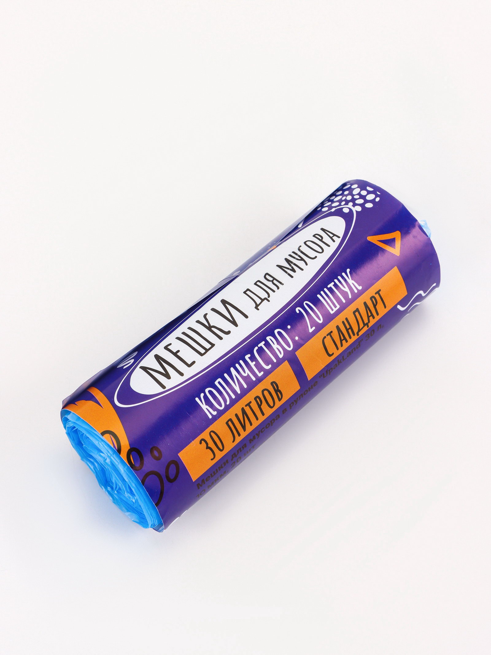 Мешки для мусора 30 л, ПНД, 10 мкм, 20 шт. в рул, синие, 30000 мл., UPAK LAND, Россия