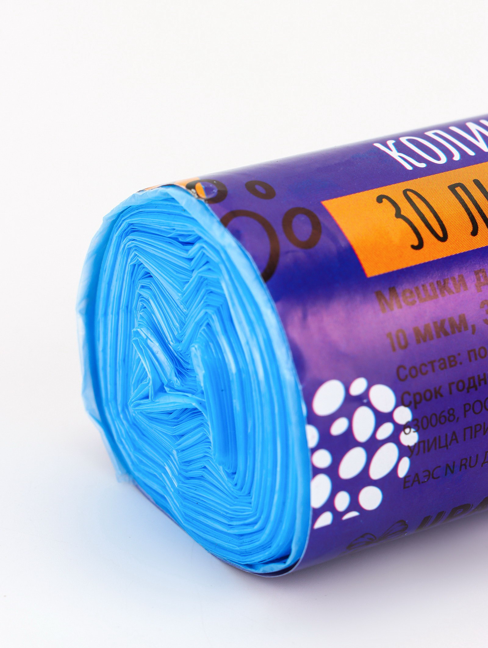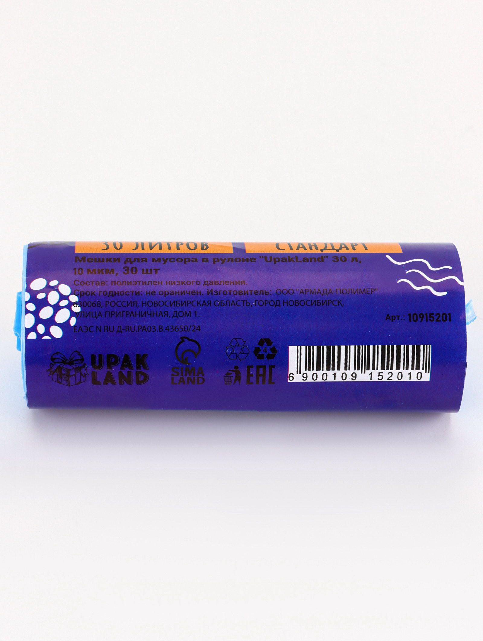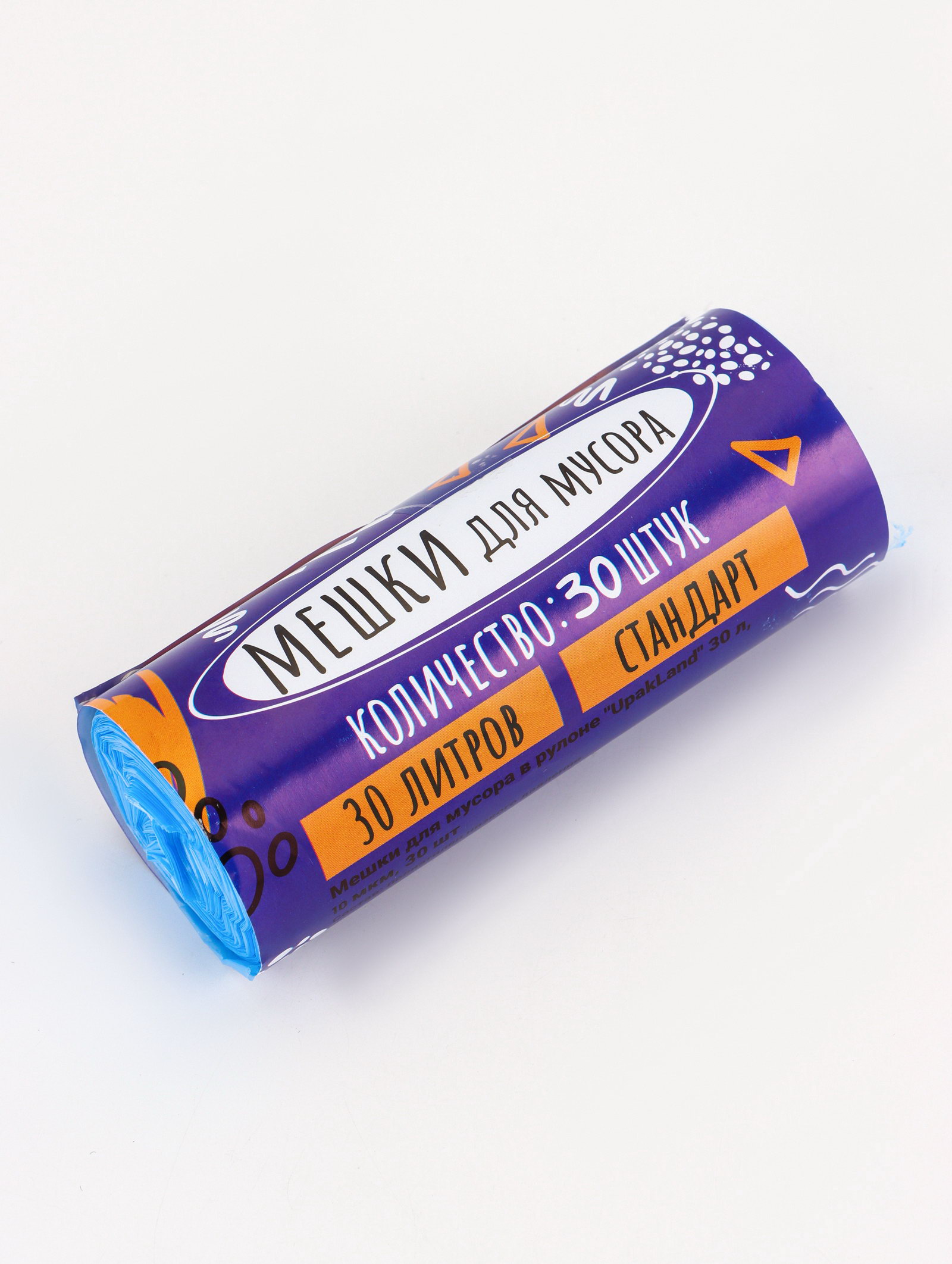 Мешки для мусора 30 л, ПНД, 10 мкм, 30 шт. в рул, синие, 30000 мл., UPAK LAND, Россия