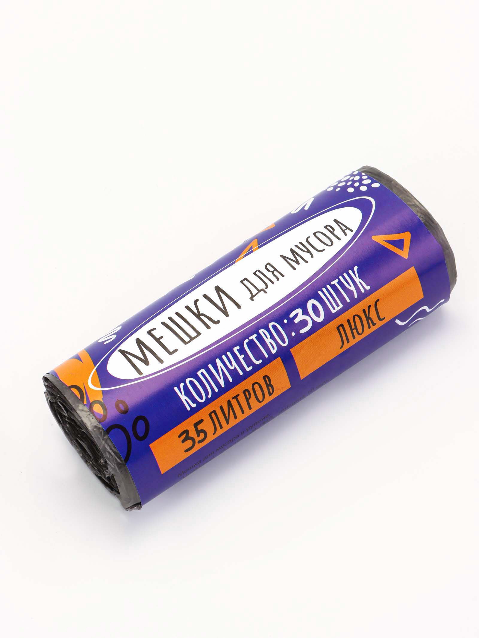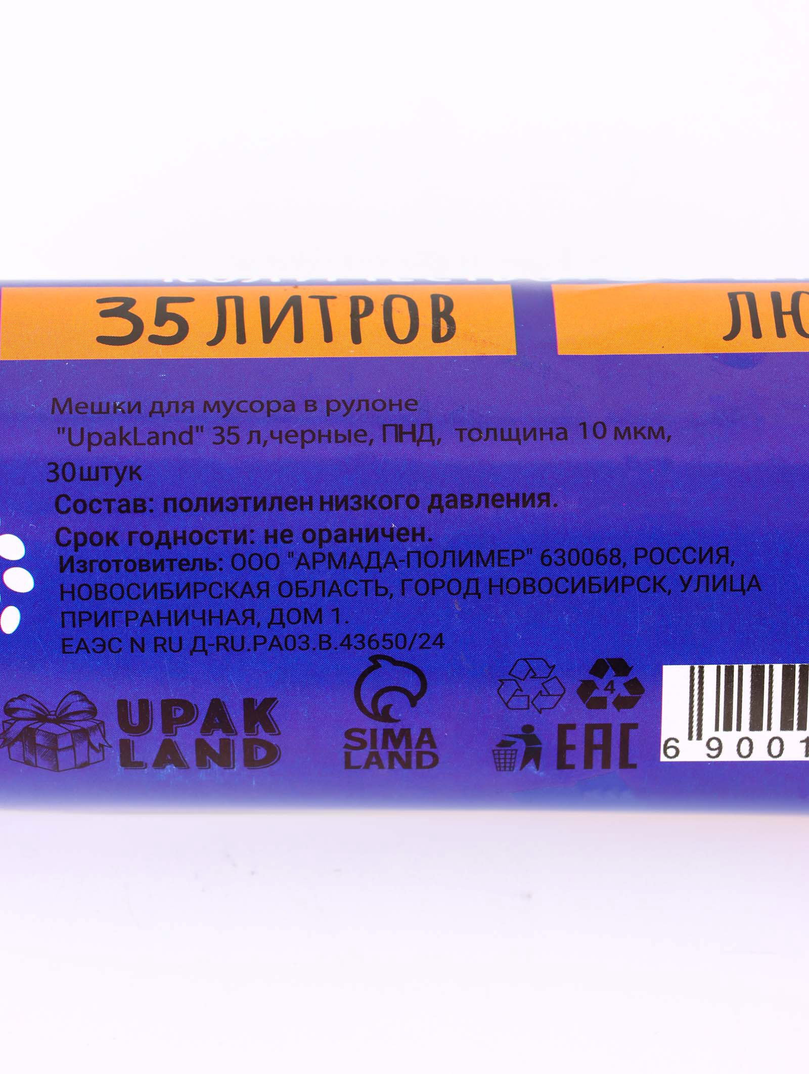Мешки для мусора 35 л, ПНД, 10 мкм, 30 шт. в рулоне, чёрные, 35000 мл., UPAK LAND, Россия