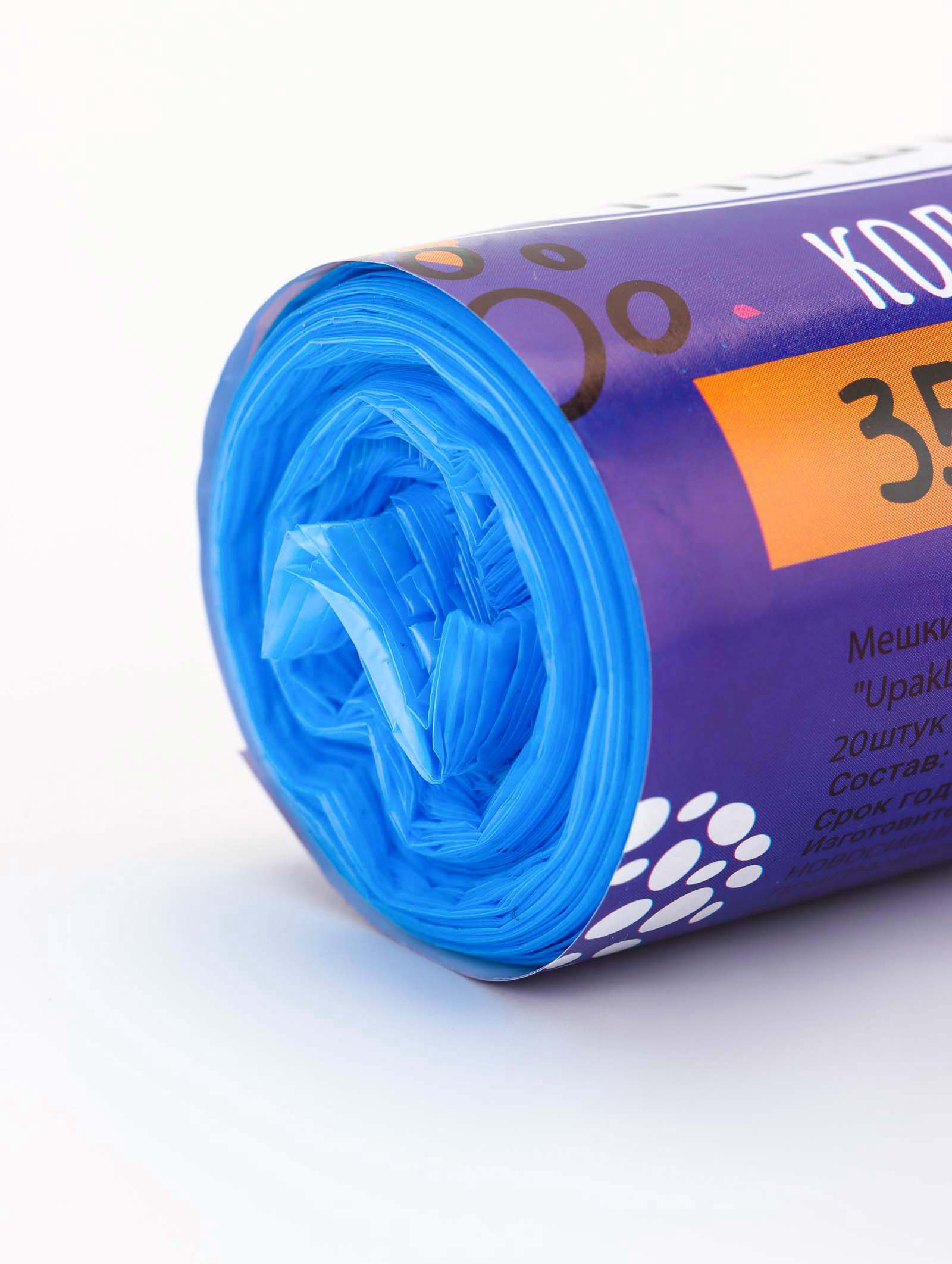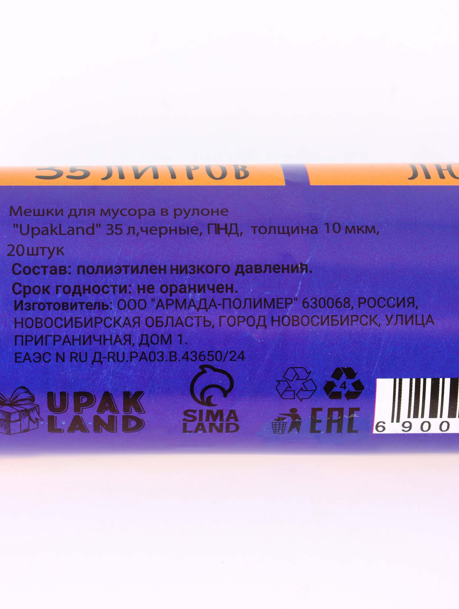 Мешки для мусора 35 л, ПНД, 10 мкм, 20 шт. в рулоне, синие, 35000 мл., UPAK LAND, Россия