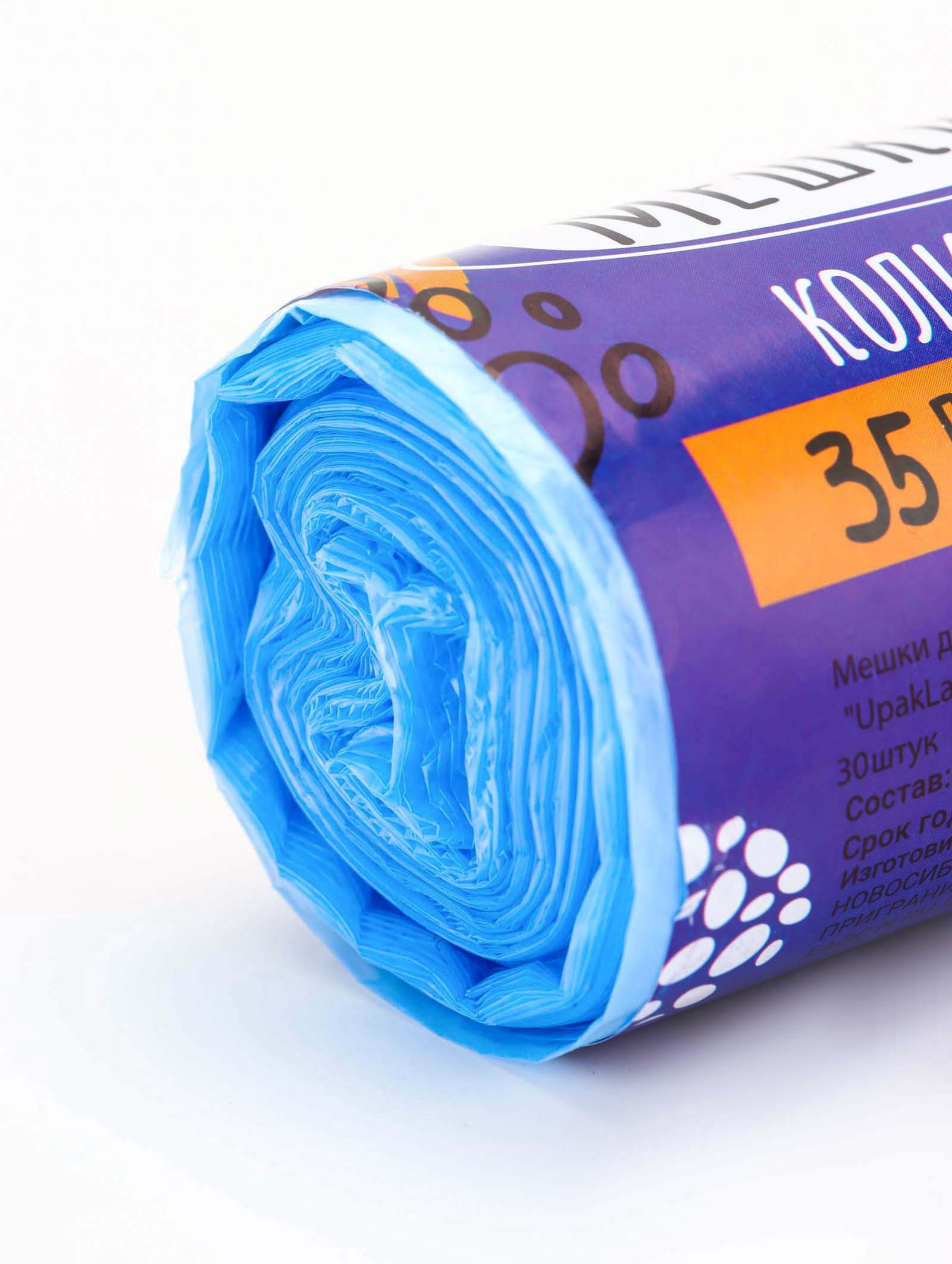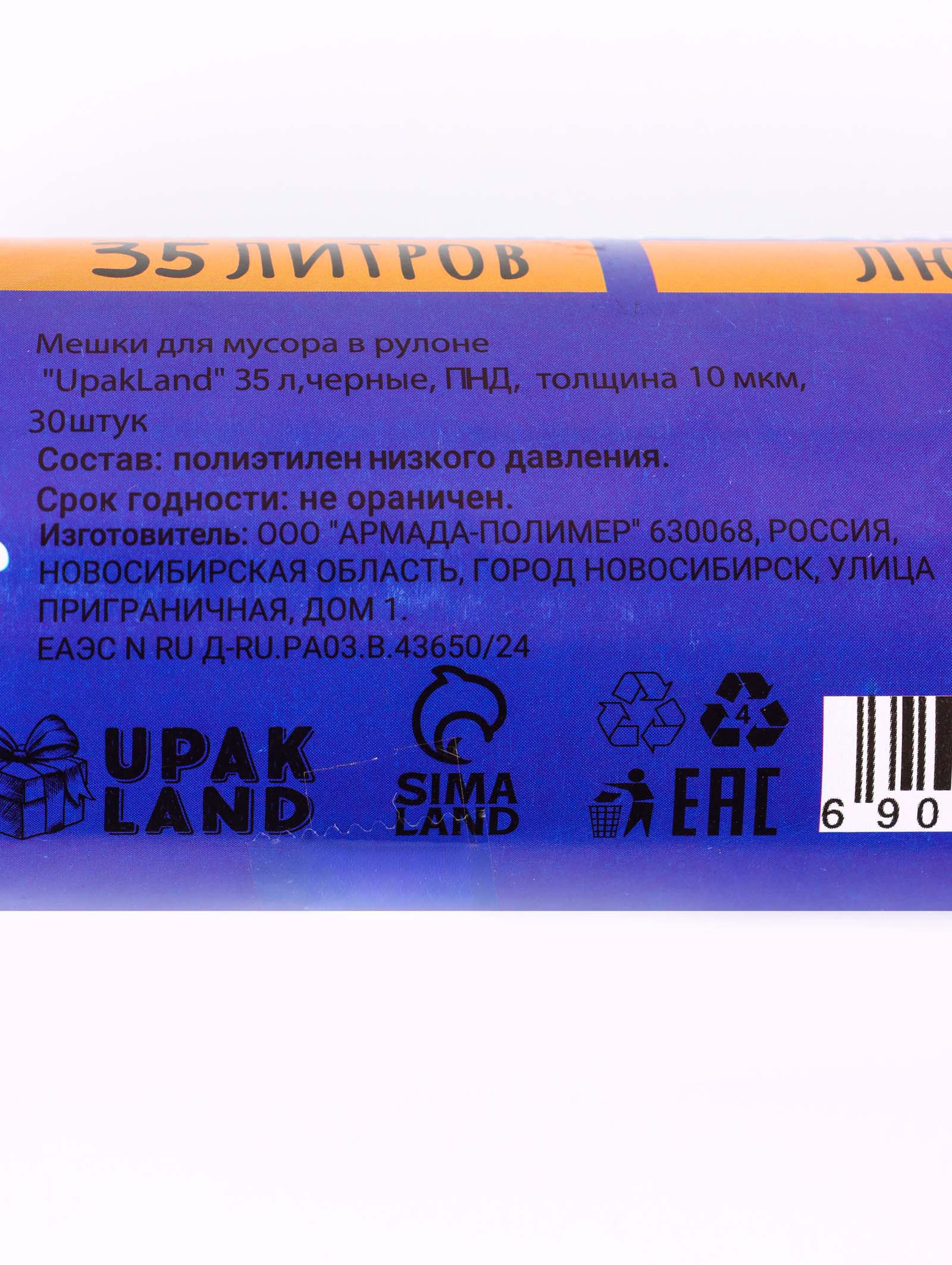 Мешки для мусора 35 л, ПНД, 10 мкм, 30 шт. в рулоне, синие, 35000 мл., UPAK LAND, Россия
