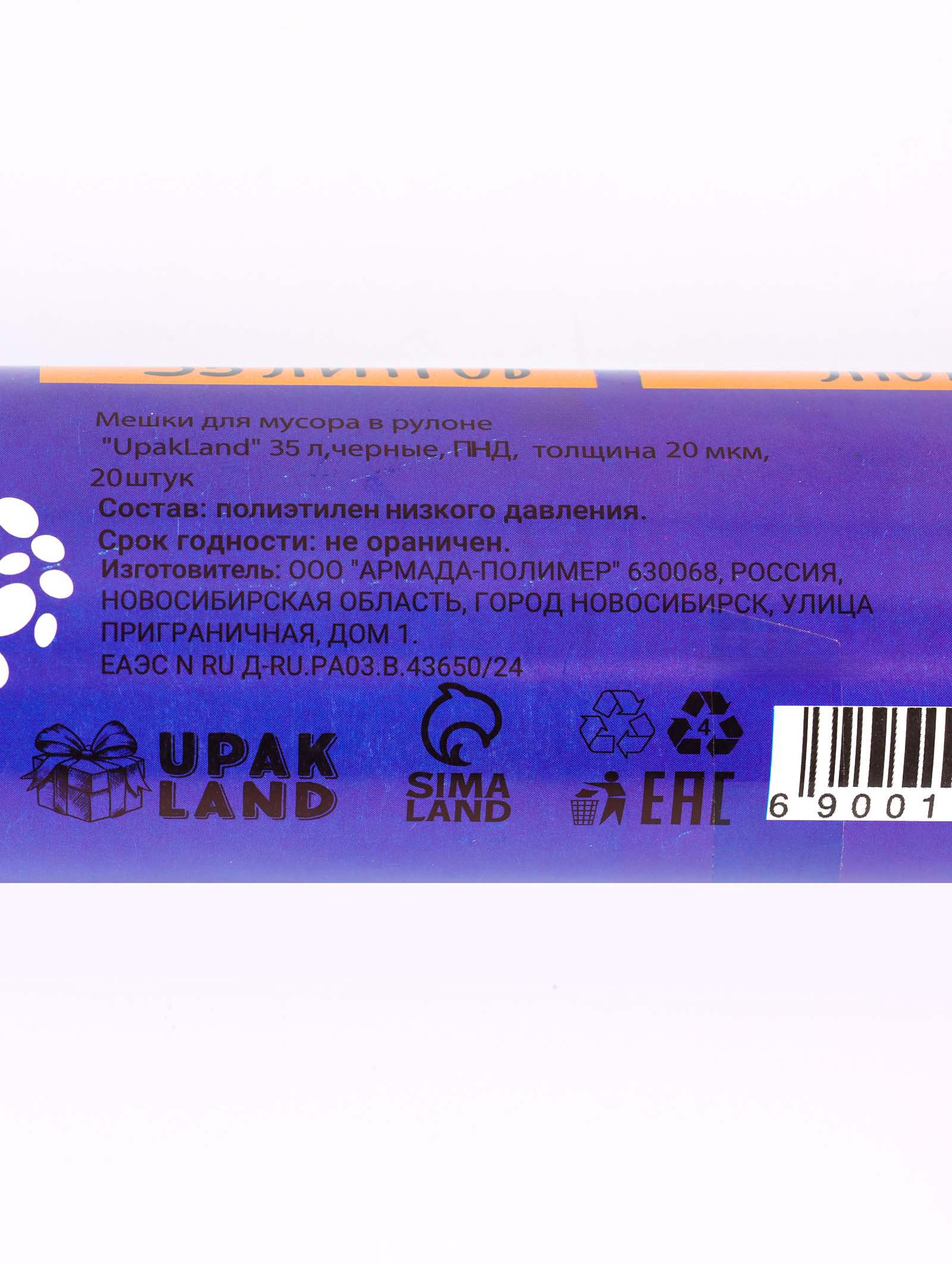 Мешки для мусора 35 л, ПНД, 20 мкм, 20 шт. в рулоне, синие, 35000 мл., UPAK LAND, Россия