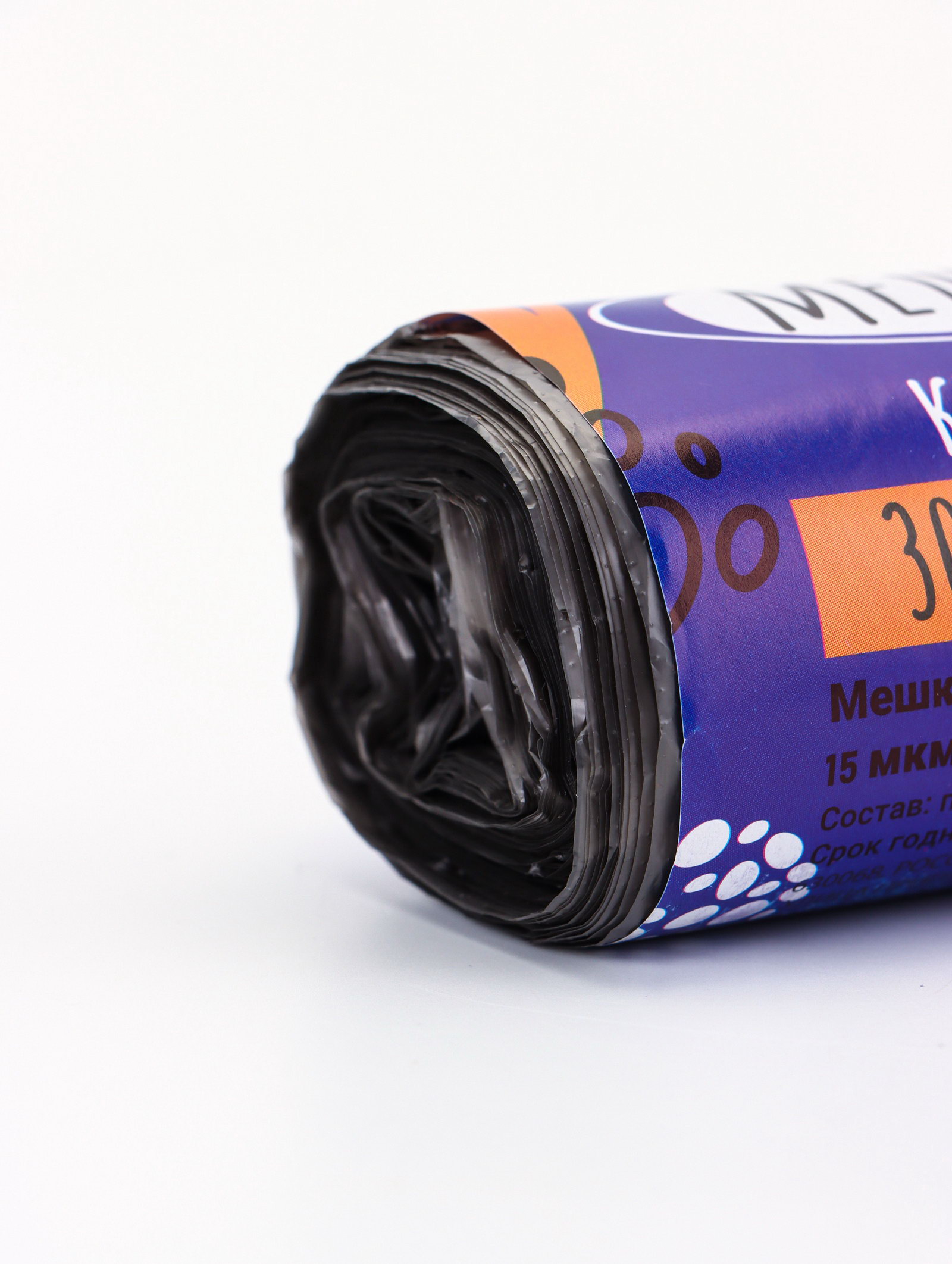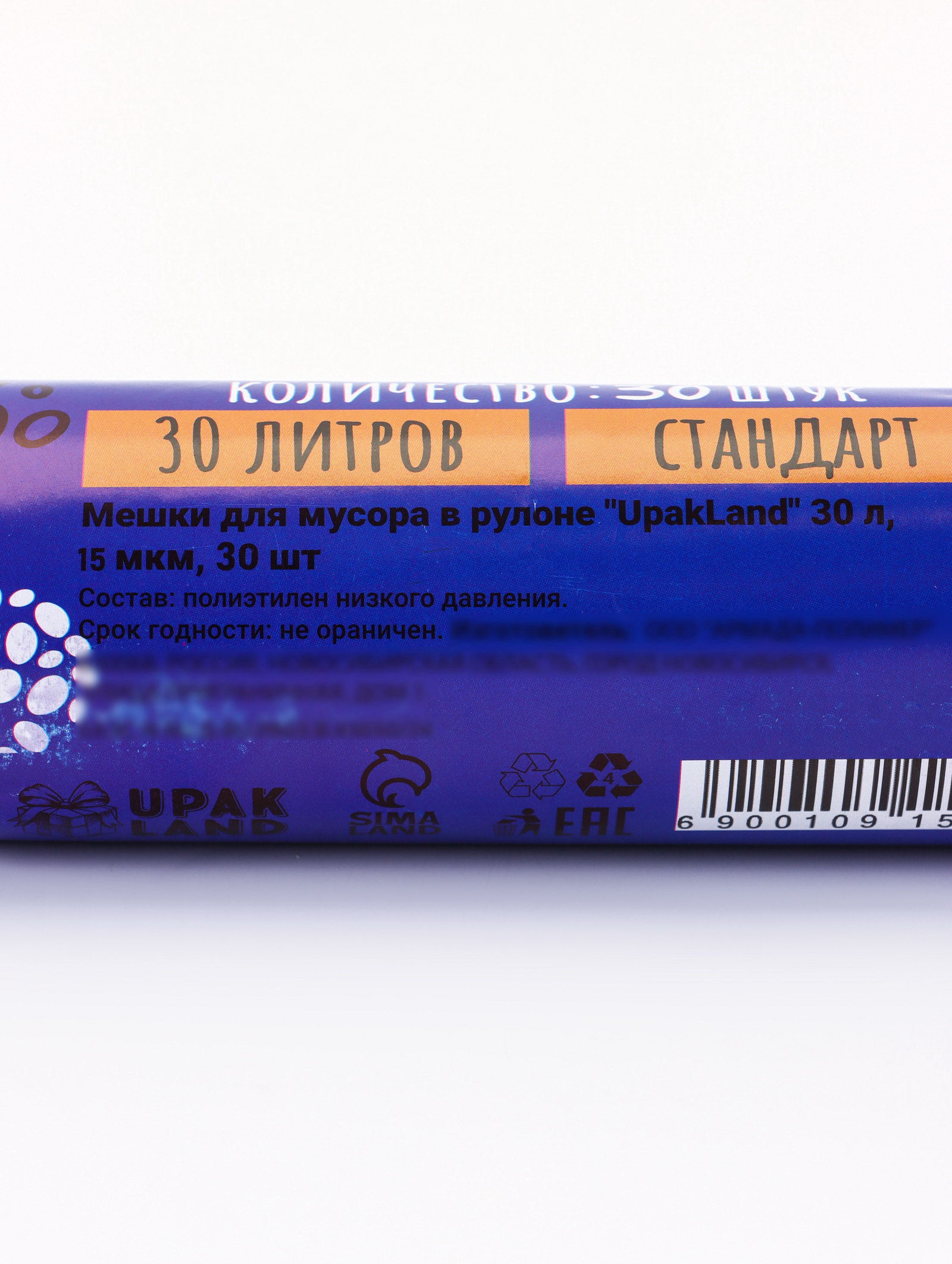 Мешки для мусора 30 л, ПНД, 15 мкм, 30 шт. в рулоне, чёрные, 30000 мл., UPAK LAND, Россия