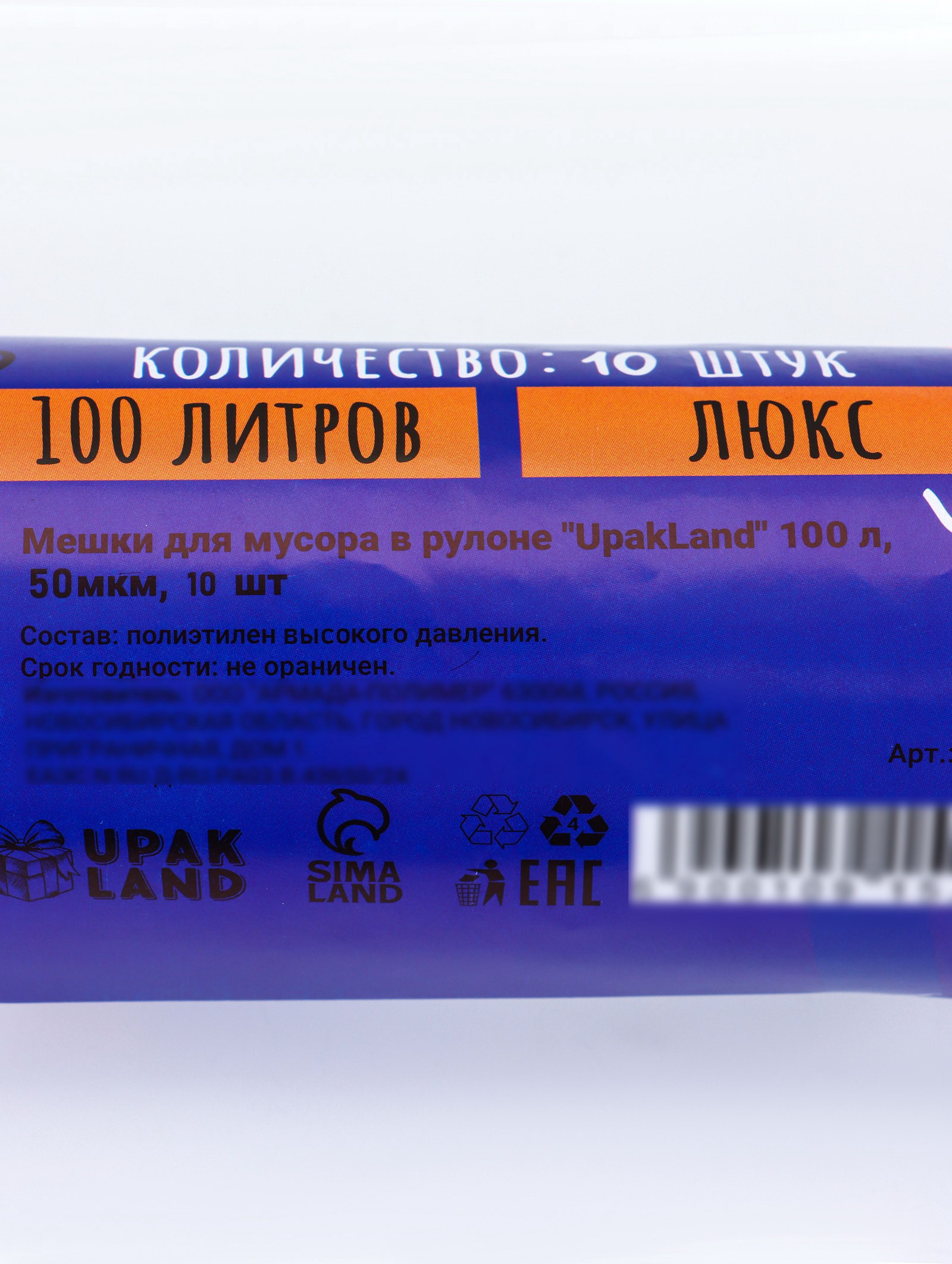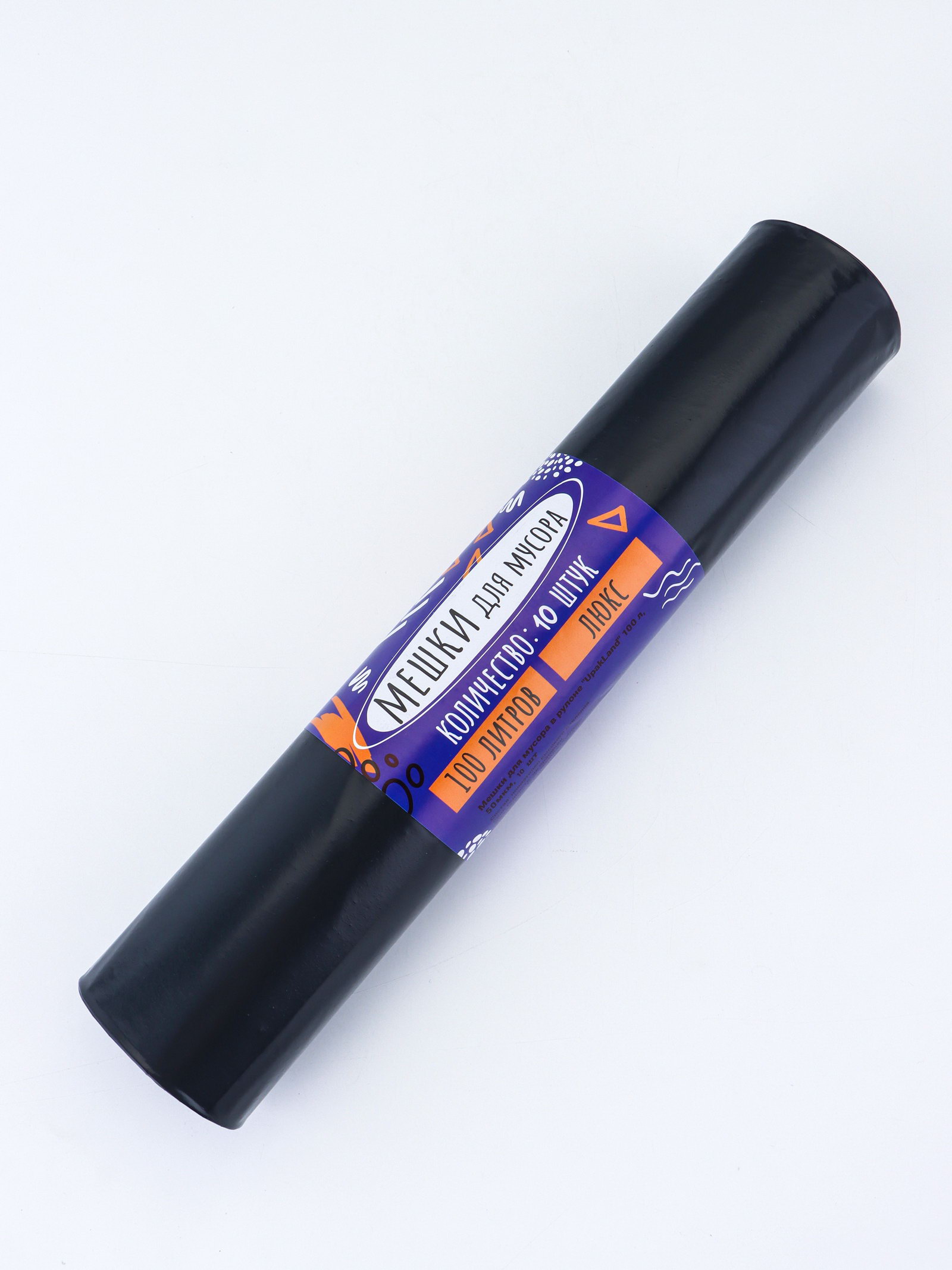 Мешки для мусора 100 л, 50 мкм, ПВД, в рулоне, 10 шт., чёрные, 100000 мл., UPAK LAND, Россия