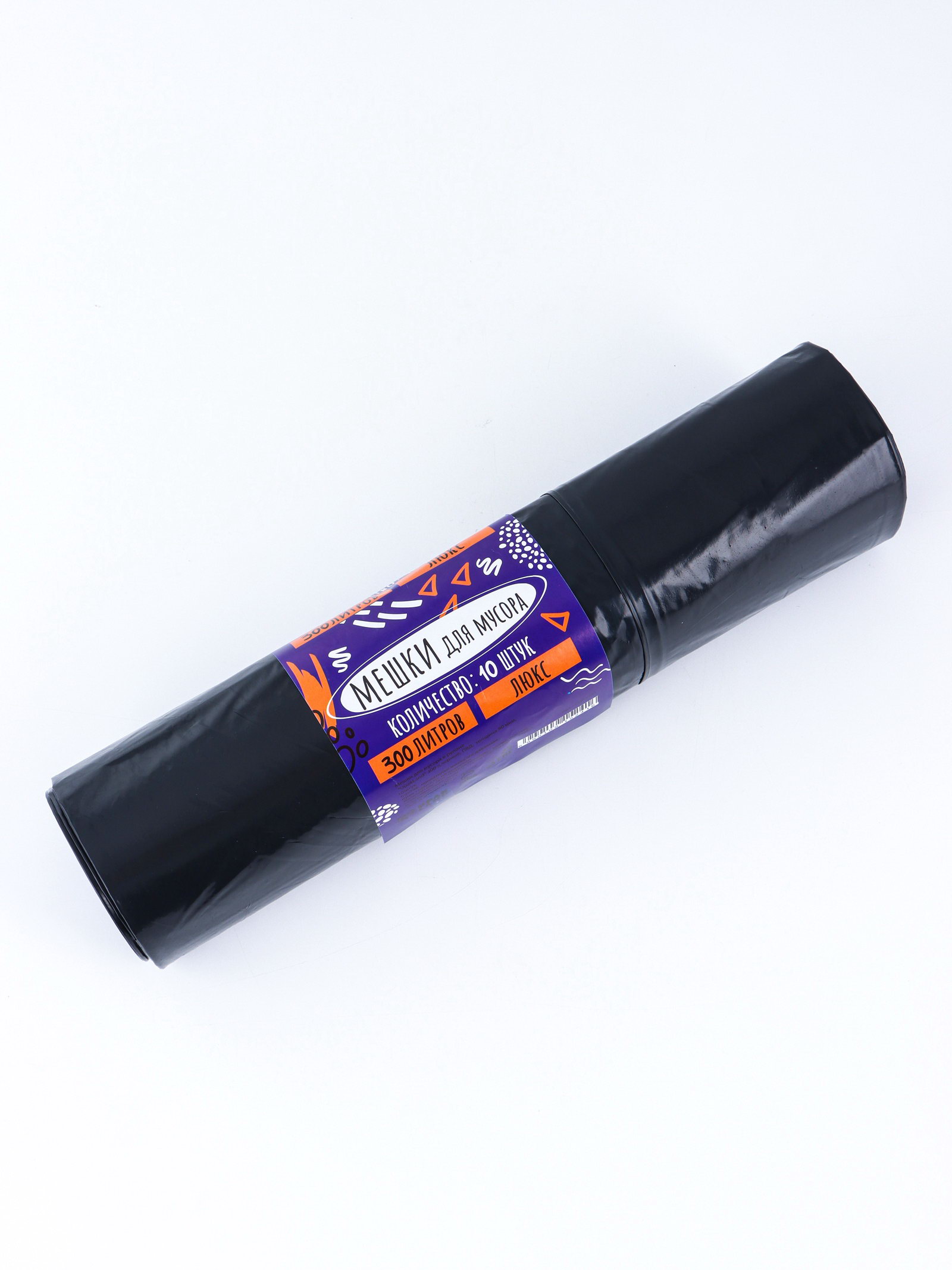 Мешки для мусора в рулоне 300 л, черные, ПВД, толщина 80 мкм, 10 штук, 300000 мл., UPAK LAND, Россия
