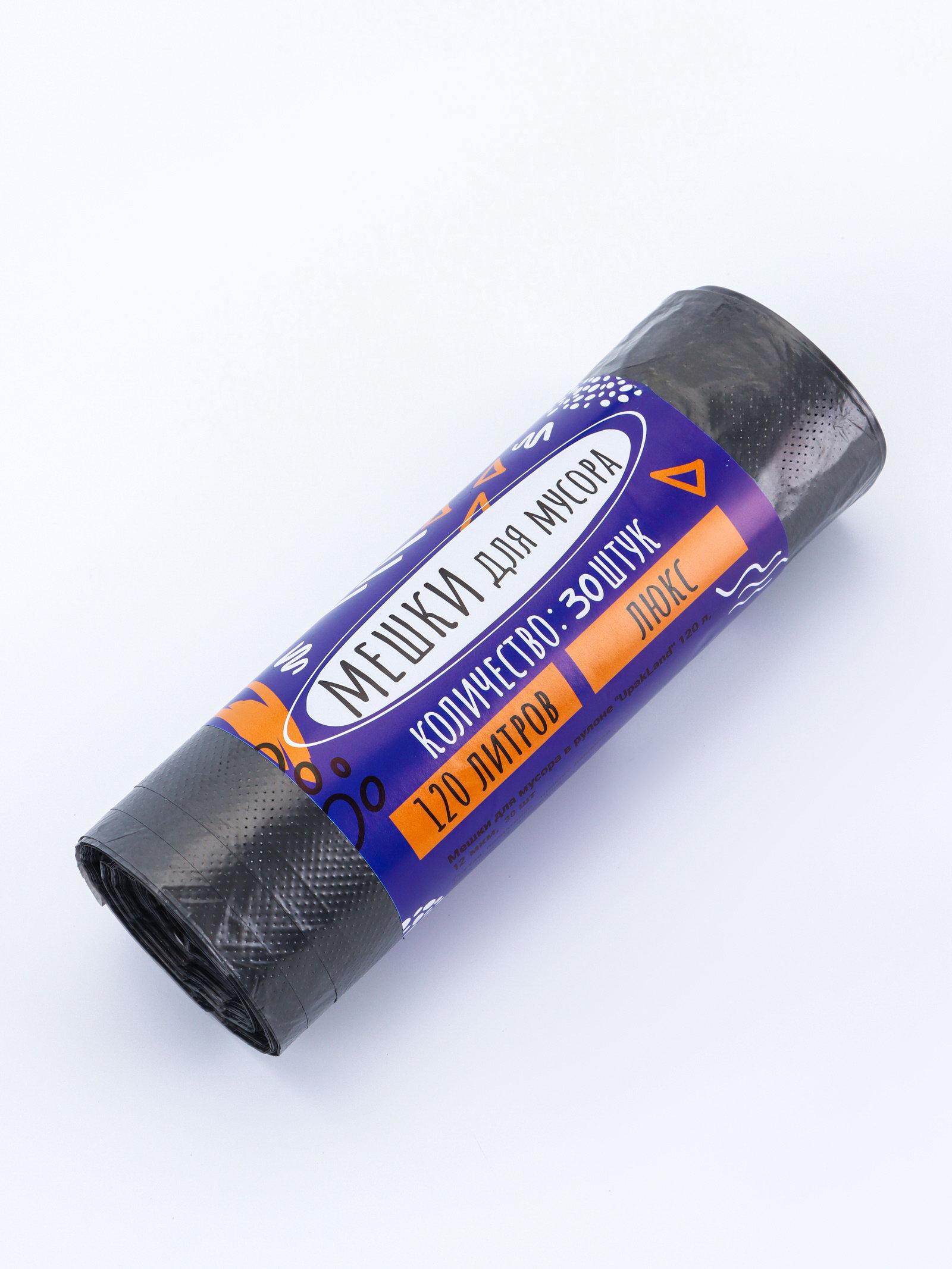 Мешки для мусора 120 л, 12 мкм, ПНД, в рулоне 30 шт., чёрные, 120000 мл., UPAK LAND, Россия