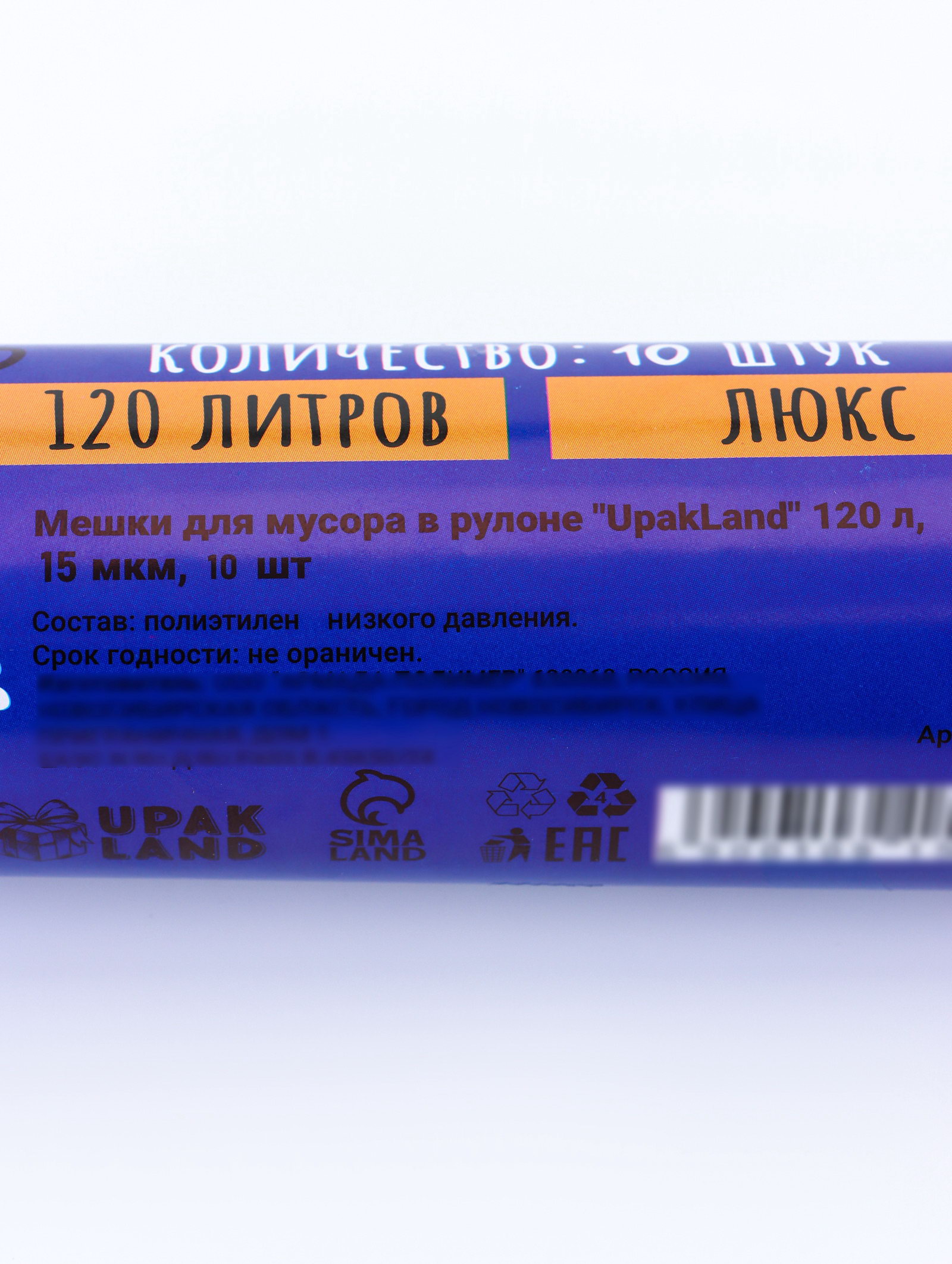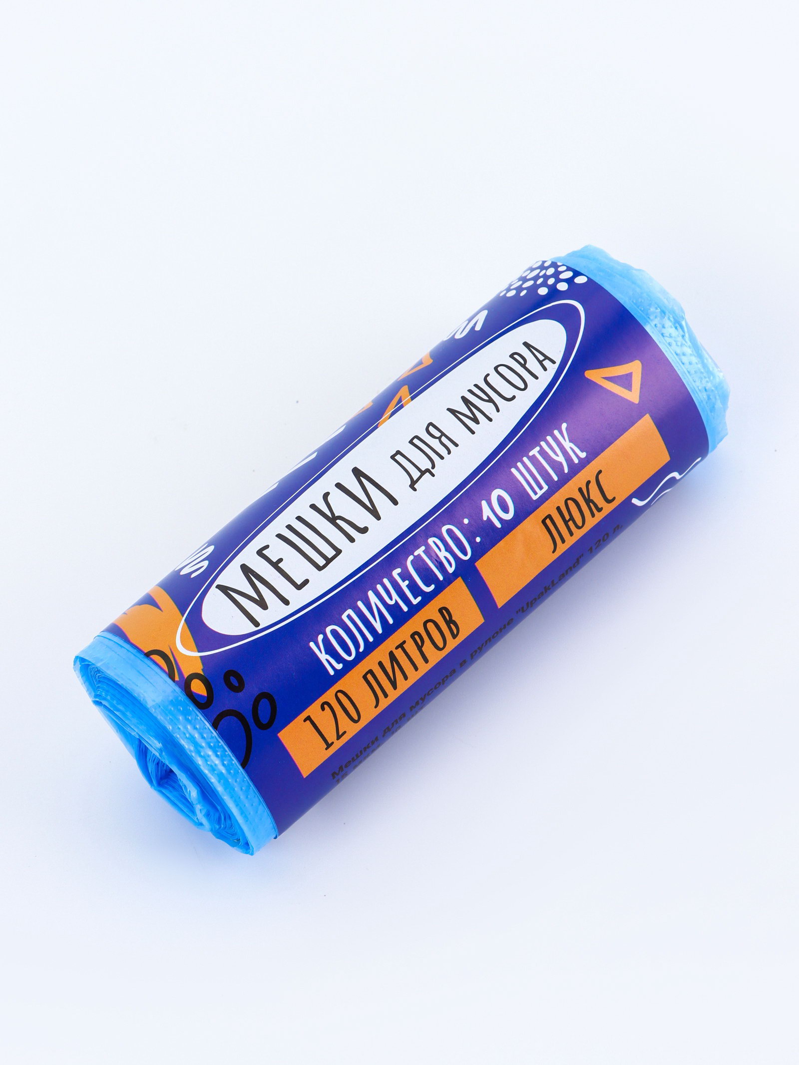 Мешки для мусора 120 л, ПНД, толщина 15 мкм, 10 шт. в рулоне, синие, 120000 мл., UPAK LAND, Россия