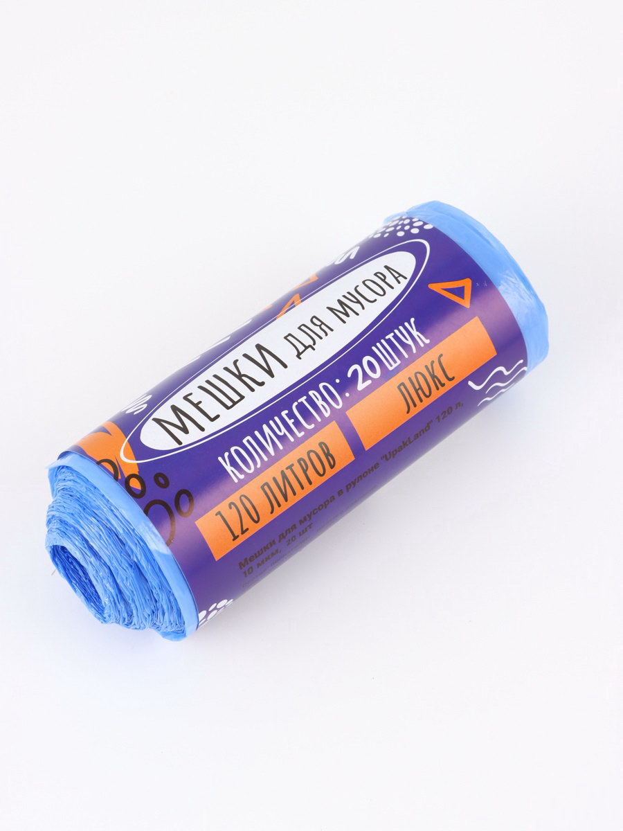 Мешки для мусора 120 л ПНД,толщина 10 мкм, 20 шт в рулоне, цвет синий, Россия