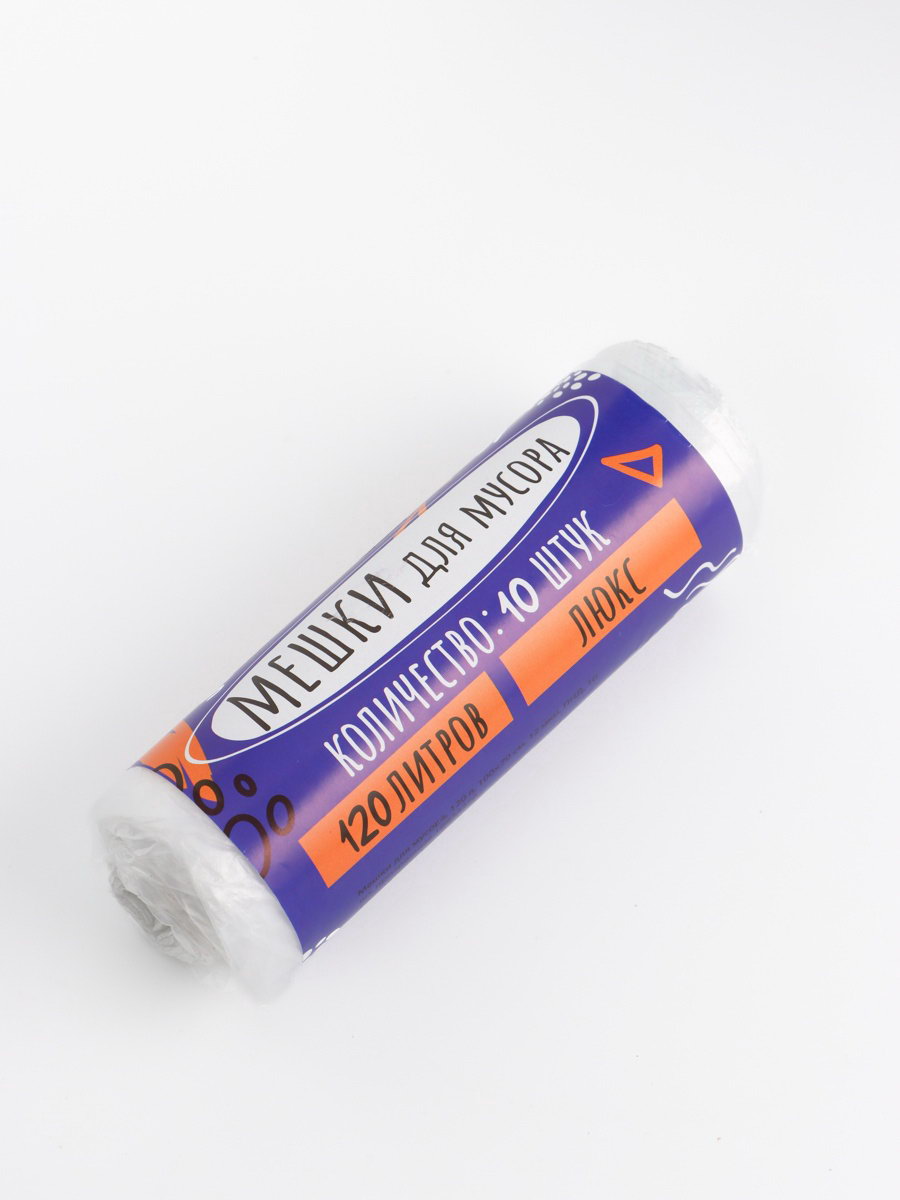 Мешки для мусора, 120 л, 100x70 см, 12 мкм, ПНД, 10 шт, прозрачные, Россия