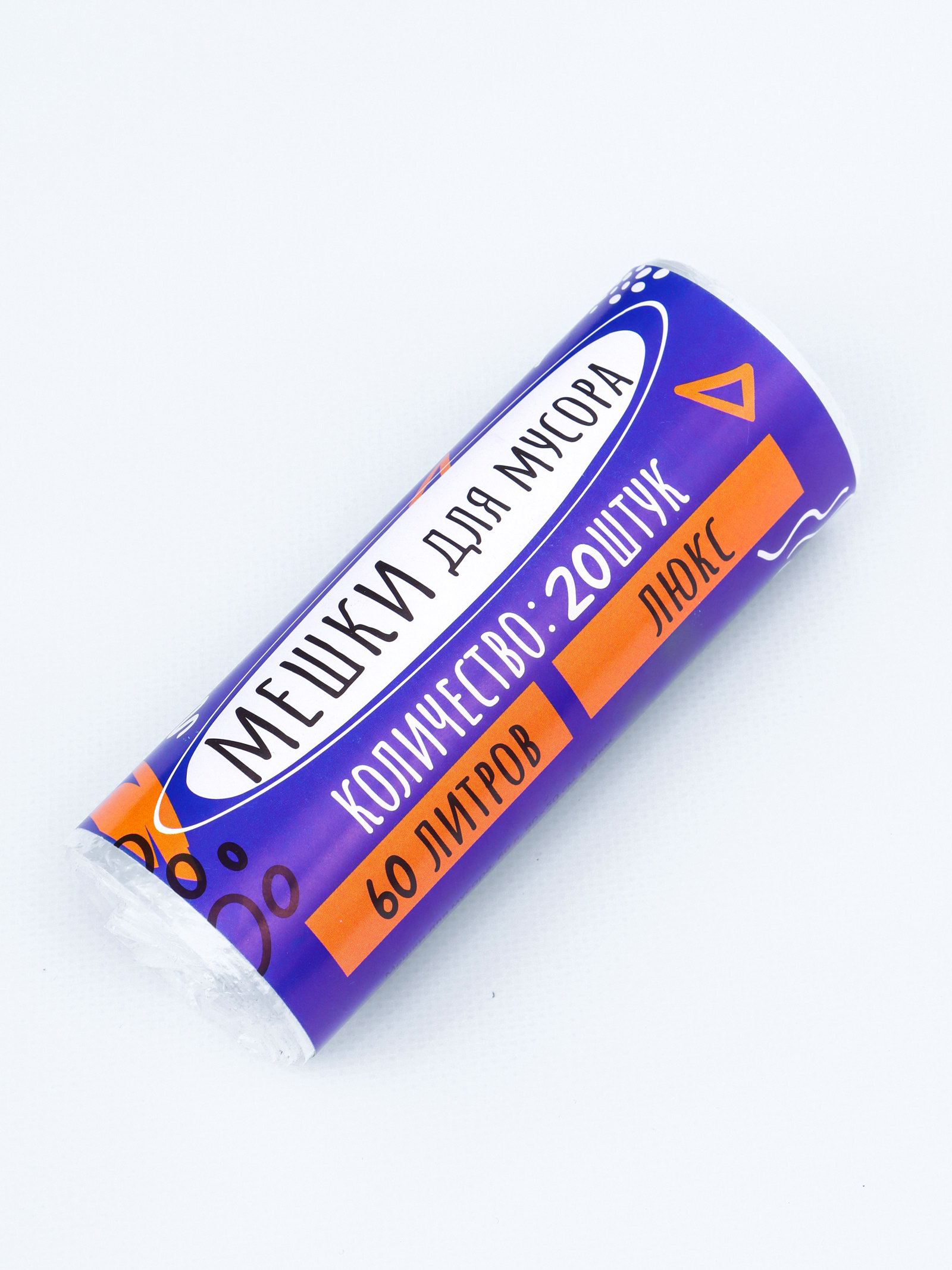 Мешки для мусора, 60 л, 80x50 см, 8 мкм, ПНД, 20 шт., прозрачные, в рулоне, Россия