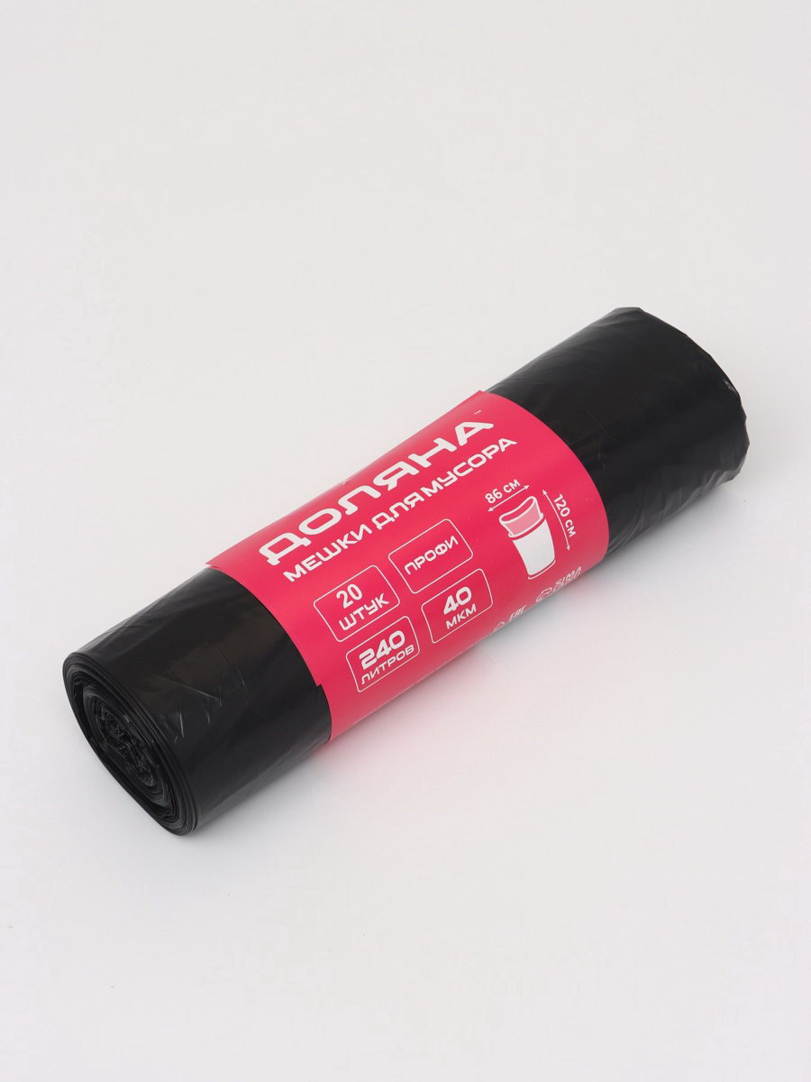 Мешки для мусора 240 л, ПВД, 40 мкм, 20 шт. в рул, 86x120 см, чёрные, 240000 мл., Россия