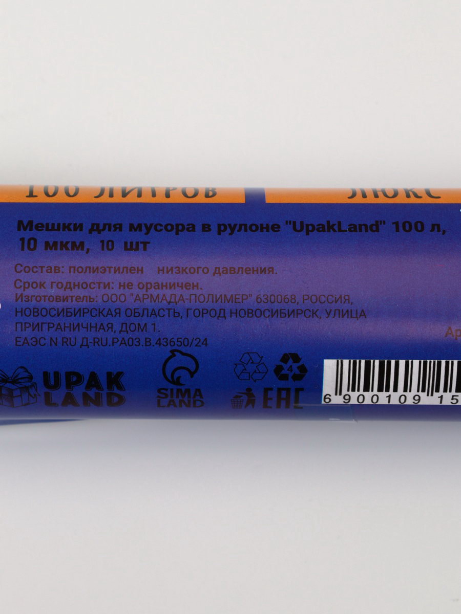 Мешки для мусора 100 л, 10 мкм, ПНД, 10 шт., чёрные, 100000 мл., UPAK LAND, Россия