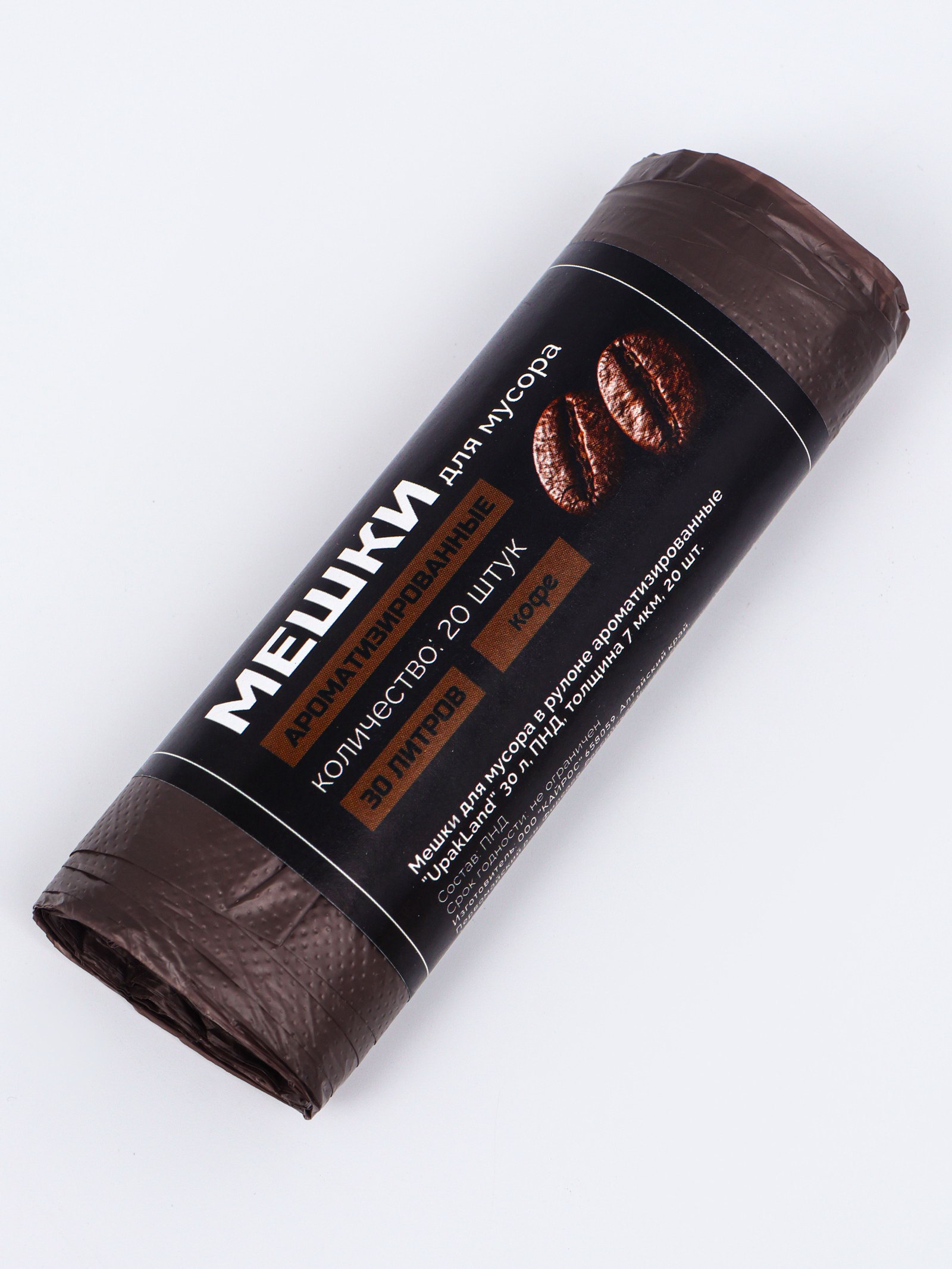 Мешки для мусора ароматизированные 30 л, Кофе UpakLand ПНД, толщ 7 мкм, 20 шт., 30000 мл., UPAK LAND, Россия