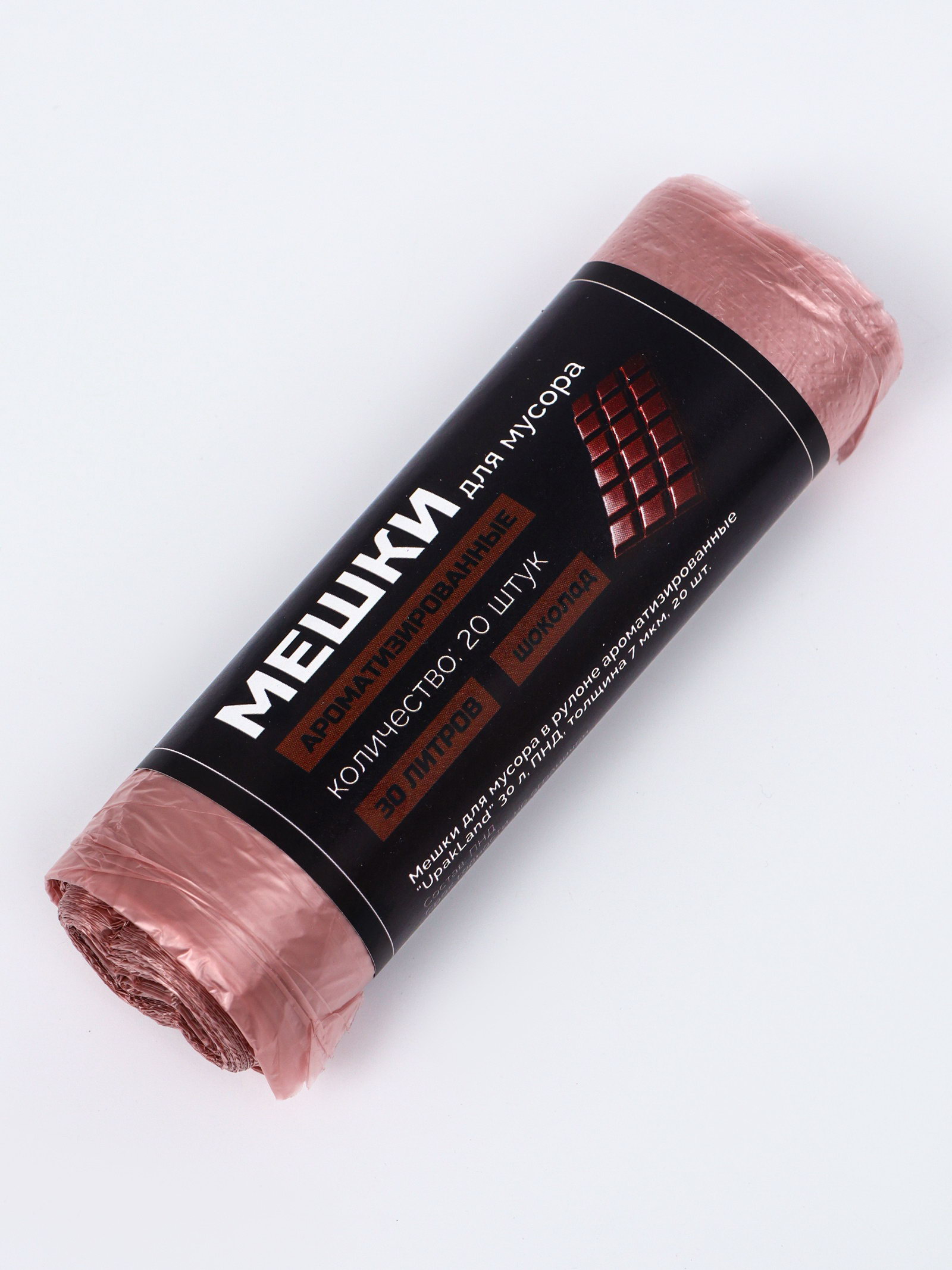 Мешки для мусора ароматизированные 30 л, Шоколад UpakLand ПНД, толщ 7 мкм, 20 шт., 30000 мл., UPAK LAND, Россия