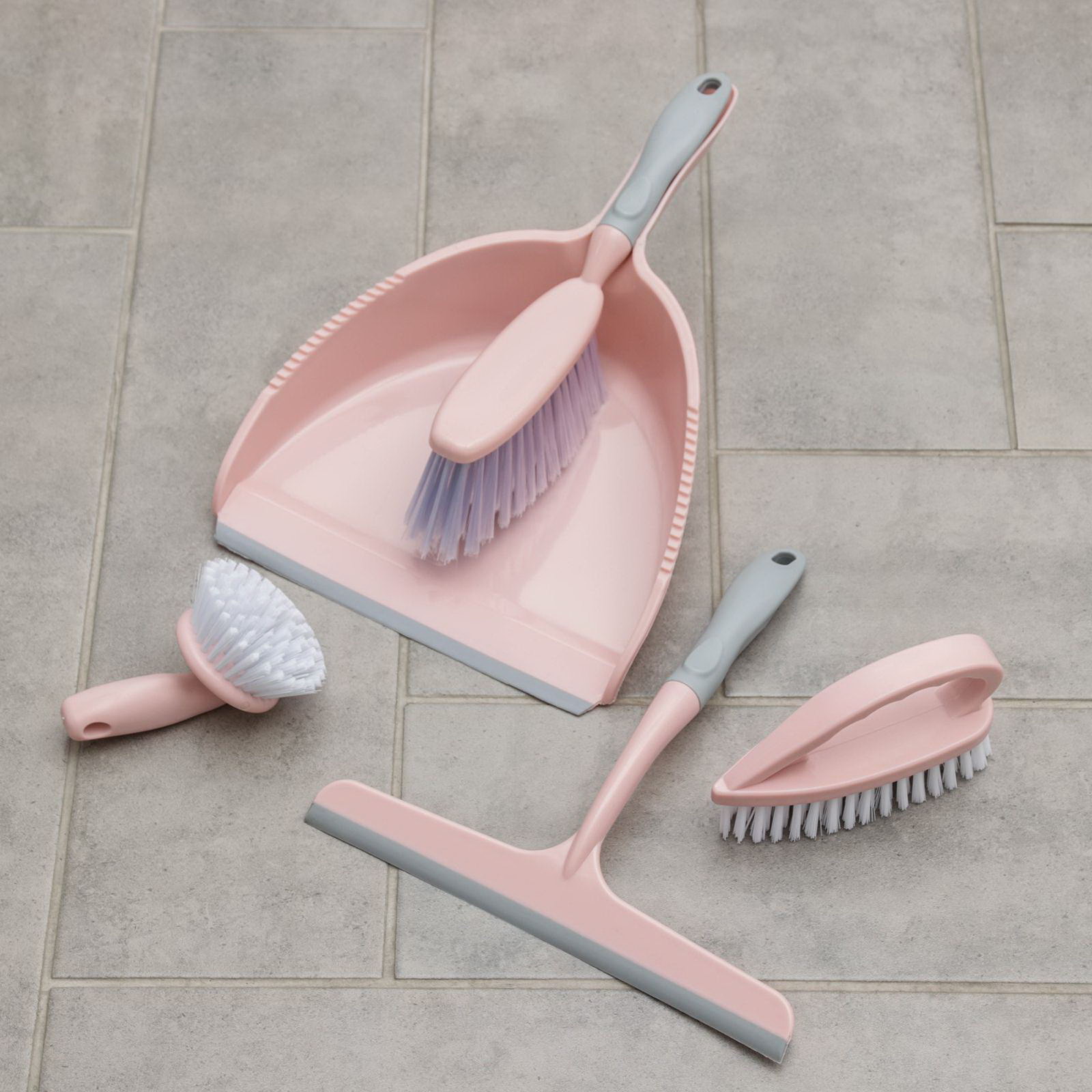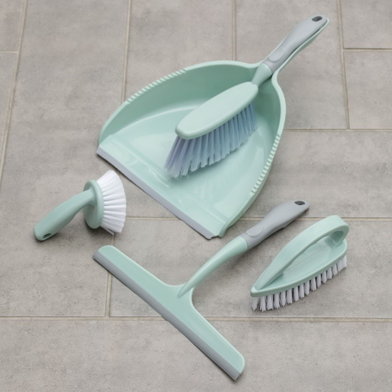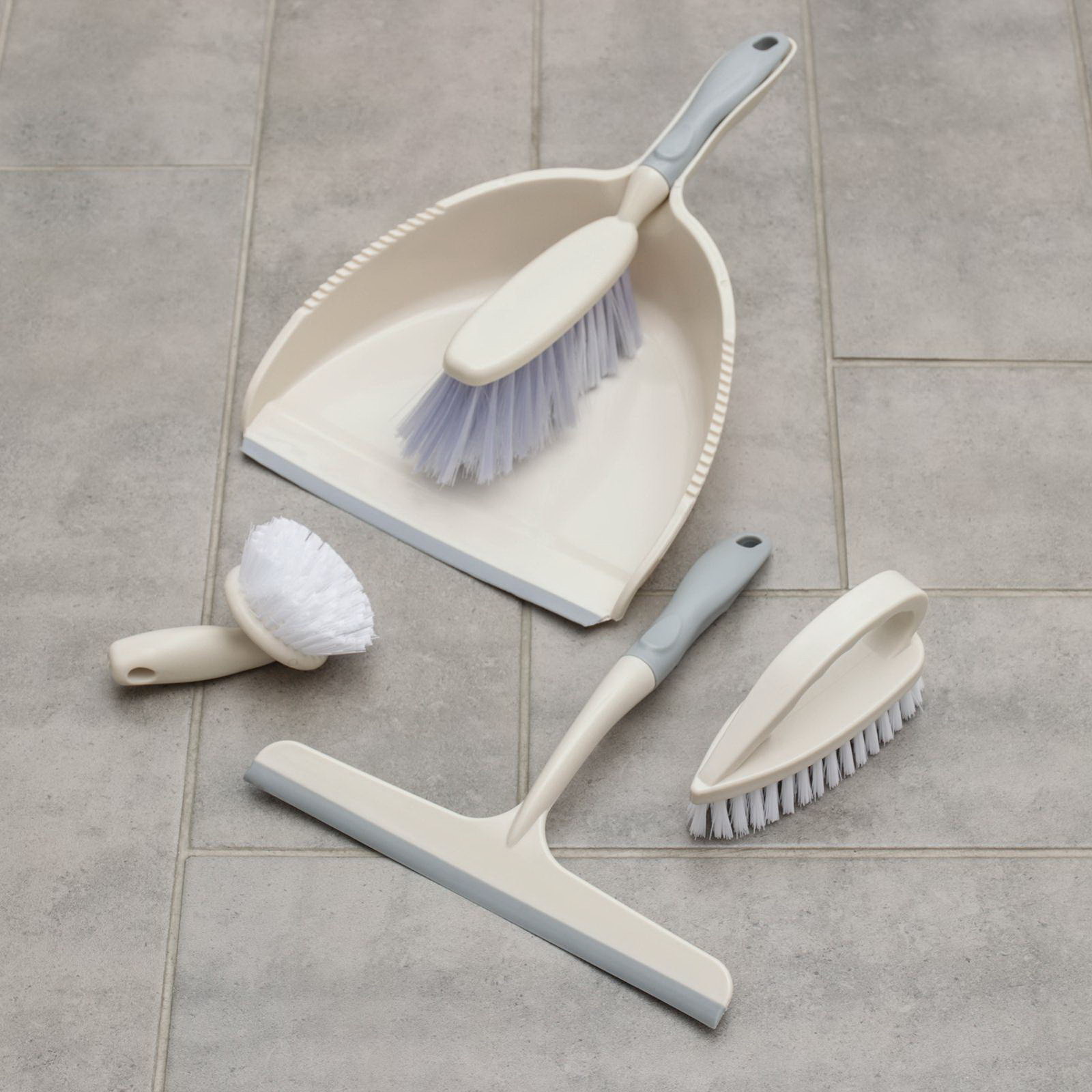 Щётки для уборки, набор из 5 предметов: совок, 3 щётки, водосгон, цвет МИКС, 29x39x9 см., Китай