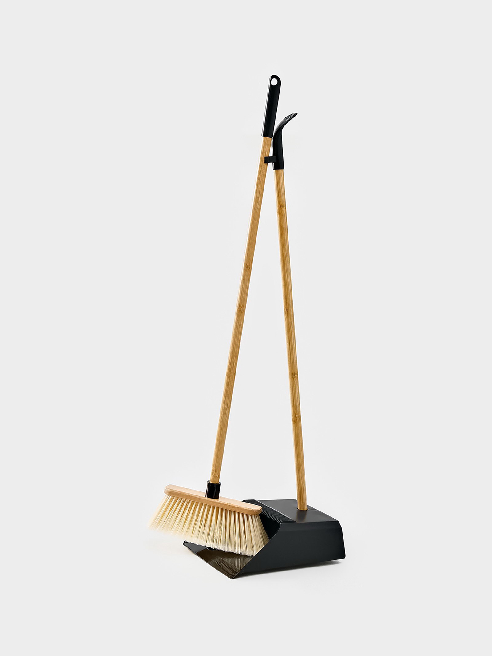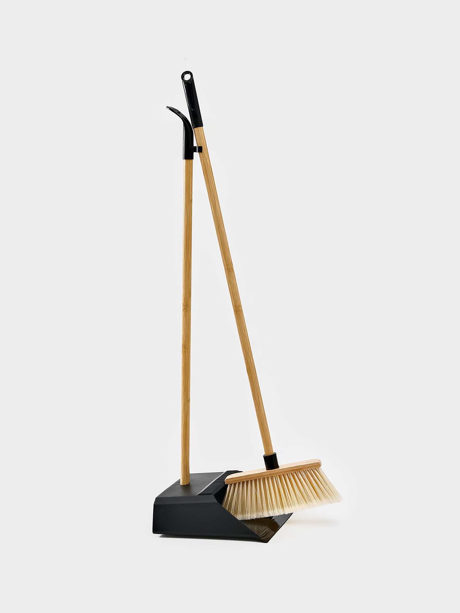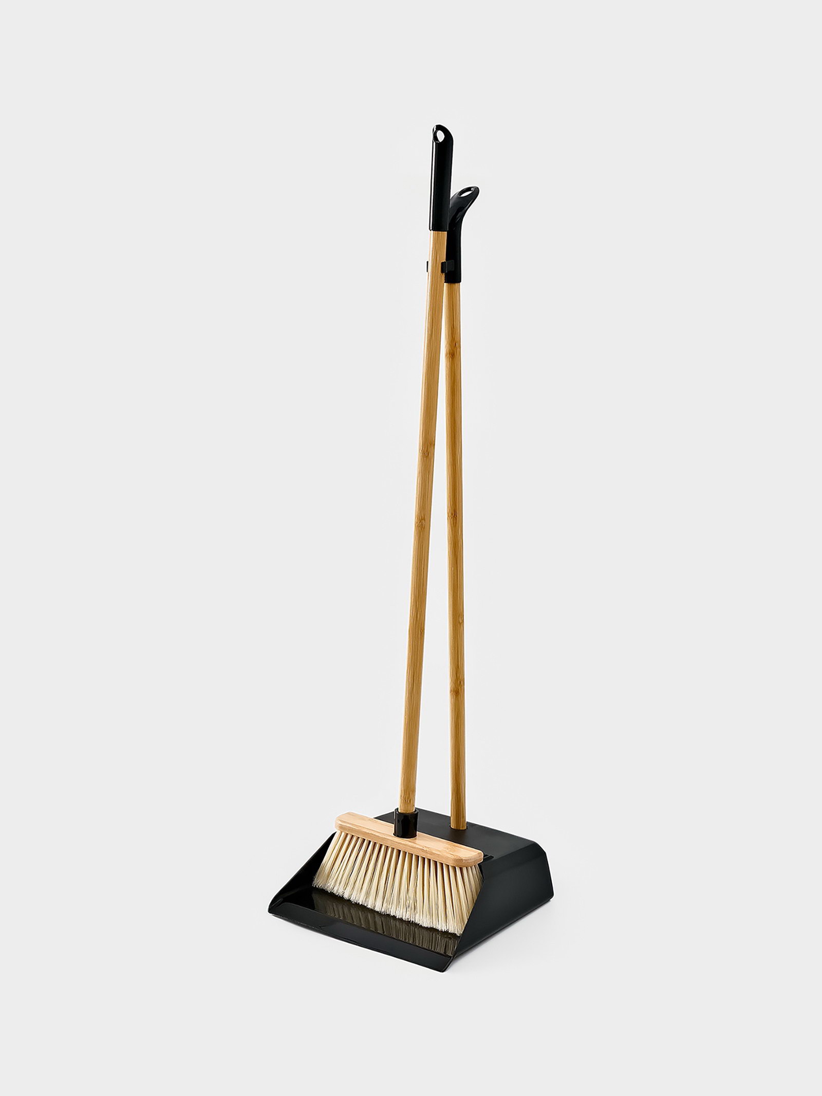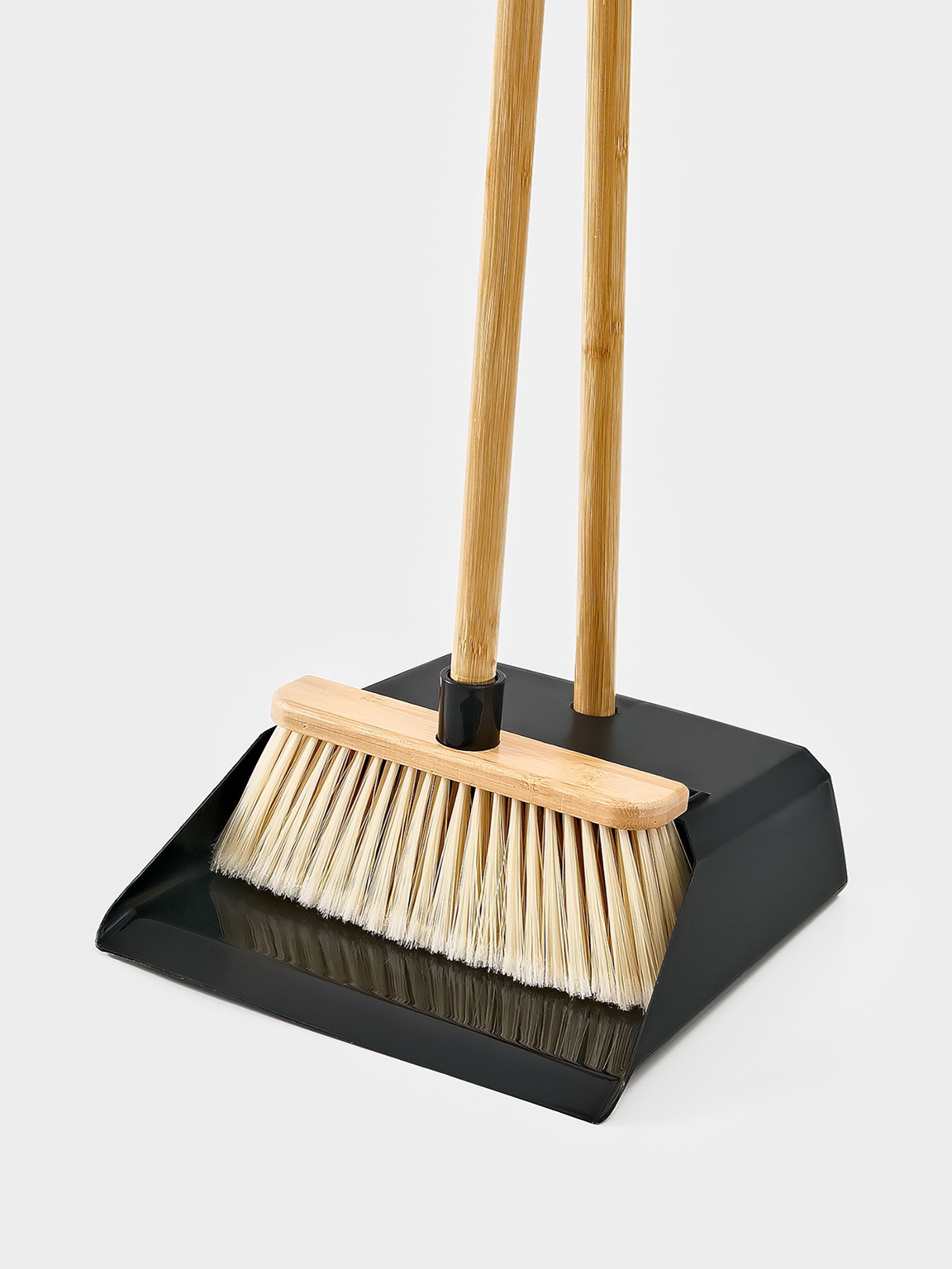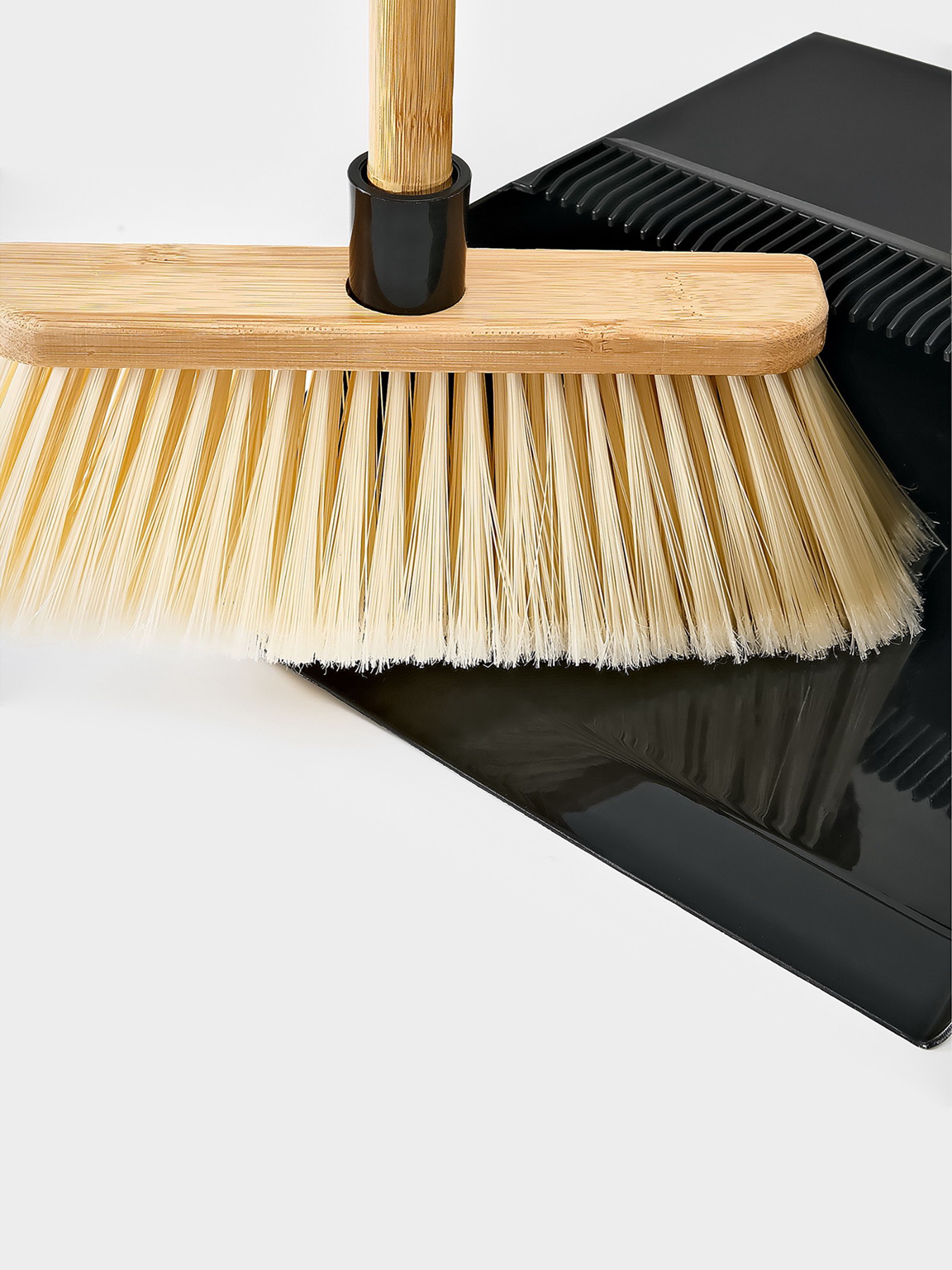 Щётка с совком Meli, бамбуковый держатель, 26x24x98 см, чёрная, 24x26x98 см., Китай