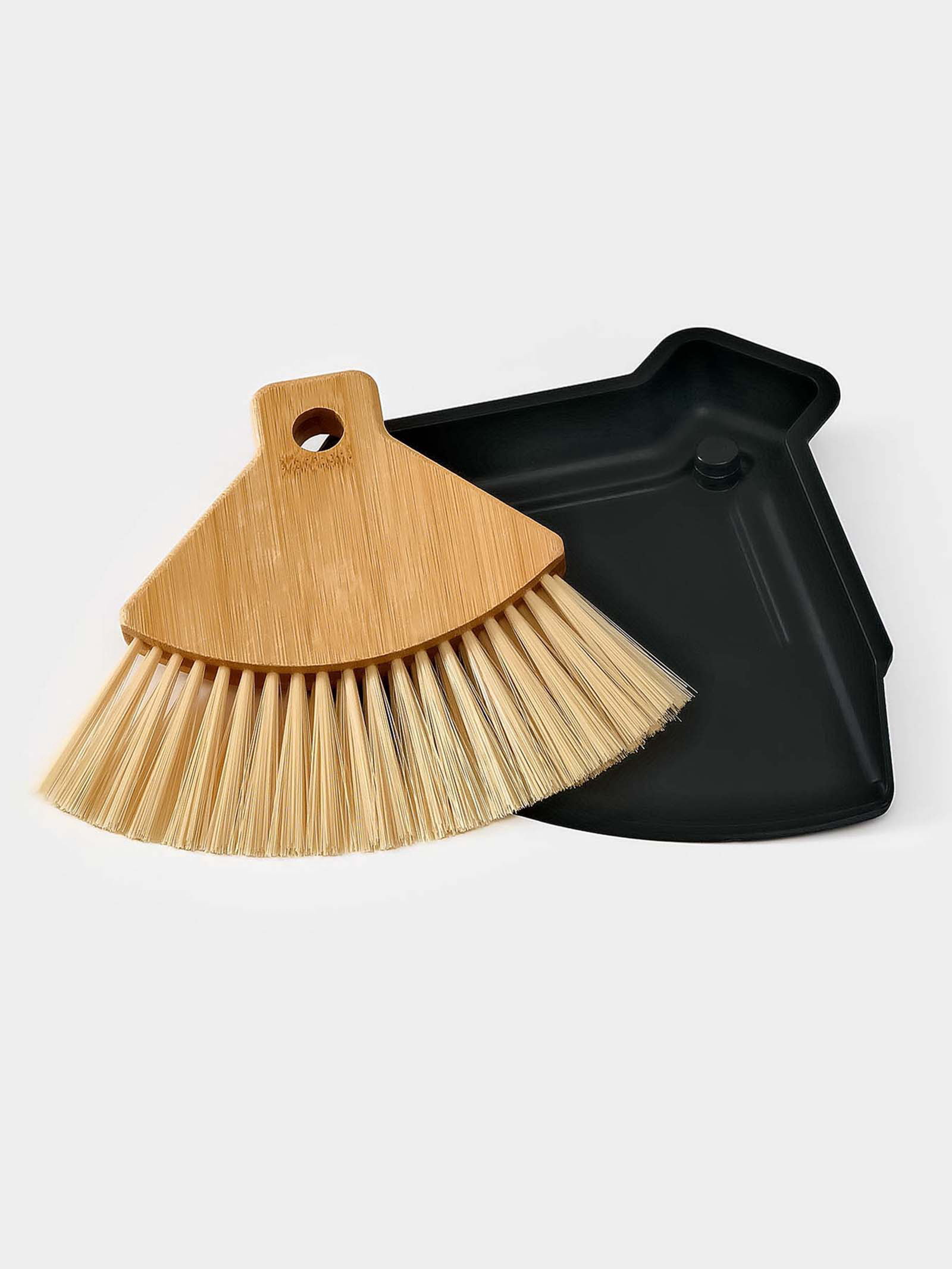 Щётка с совком Meli, бамбуковая ручка, 20x19 см, чёрная, 19x20x3.5 см., Китай