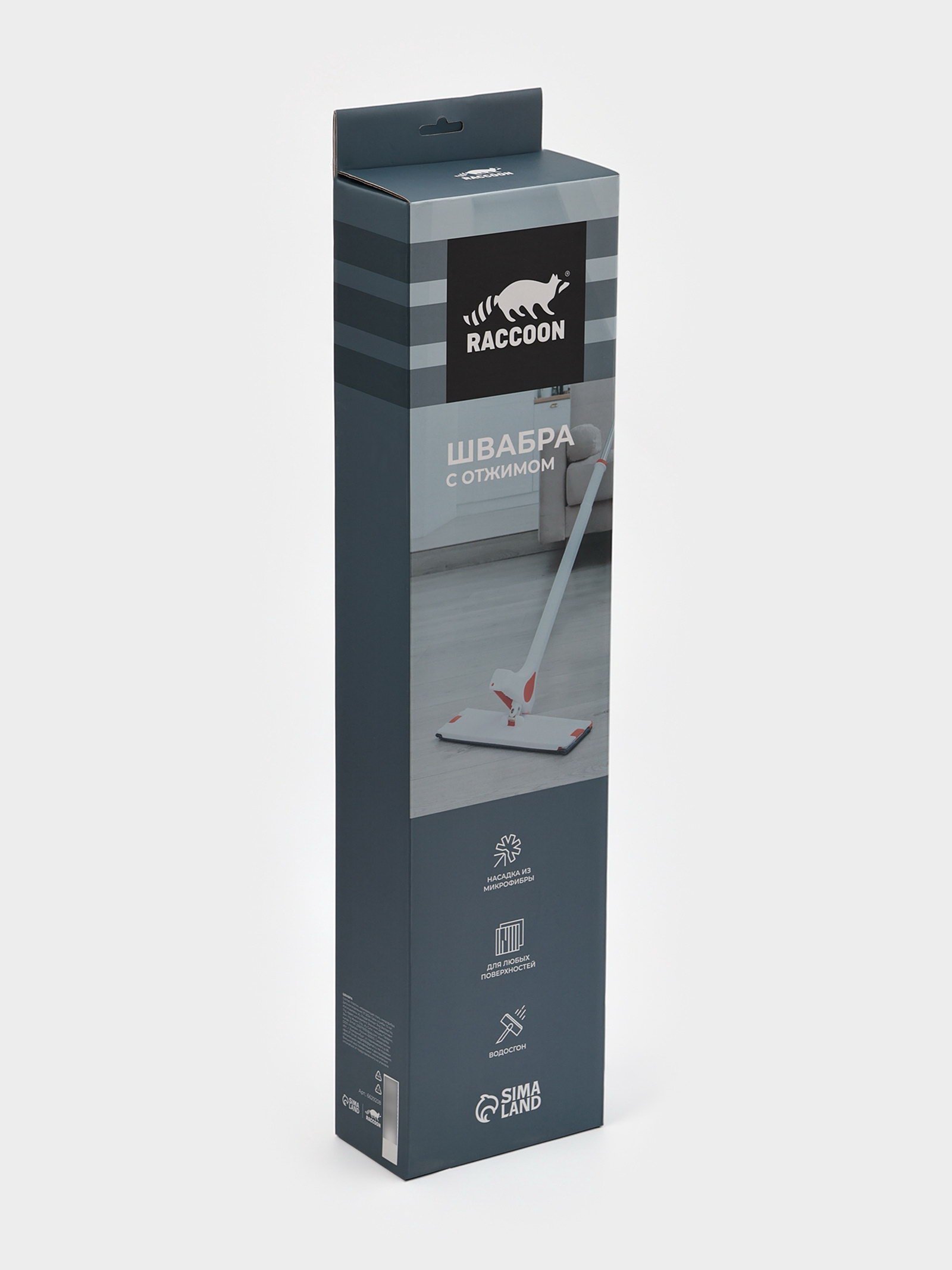 Размер упаковки: 14.5 x 8 x 64 см. Тип насадки: Плоская Способ отжима: Вертикальный tnved: 9603909000 Ручка телескопическая: Нет Отжим: Да Вид: Плоская Материал насадки: Микрофибра Материал рукоятки: Нержавеющая сталь Цвет: Оранжевый Длина ручки, см: 130 Швабра с вертикальным отжимом от торговой марки Raccoon - настоящее спасение для любой хозяйки.