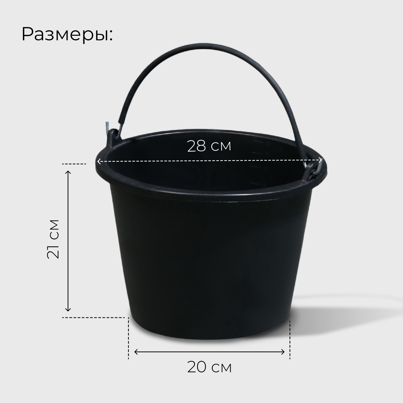 Размер упаковки: 29 x 27.5 x 23 см. tnved: 3926909700 Цвет: Чёрный Складной: Нет Диаметр верхней части, см: 28 Форма: Круг Отжим: Нет Слив (носик): Нет Диаметр дна, см: 20 Высота, см: 21 Крышка: Нет Рисунок: Нет Температурное ограничение: Нет Вид: Ведро Этот строительный помощник станет незаменимым инструментом в вашем арсенале для любых ремонтных или строительных работ. Лёгкий, но прочный пластиковый материал делает его идеальным для повседневного использования. Элегантный чёрный цвет подчеркнёт стиль даже при выполнении самых прозаичных задач. Ключевые преимущества