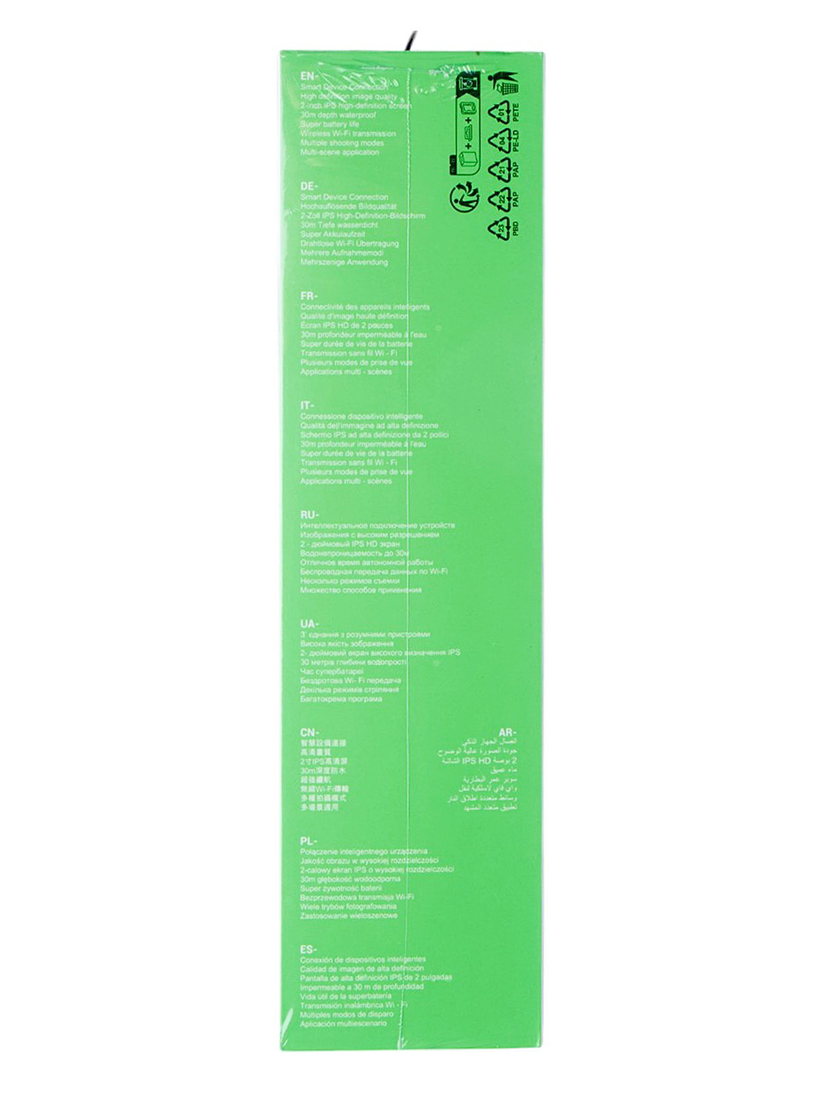 Размер упаковки: 6.5 x 12 x 23 см. Дисплей: Да Диагональ дисплея, дюйм: 2 Вес, г: 50 Ёмкость аккумулятора, mAh: 900 Макс. разрешение видеосъёмки: 1920 x 1080 Набор креплений в комплекте: Да Макс. число кадров в секунду: 30 кадр/сек Макс. объём карты памяти, Гбайт: 64 Угол обзора, град: 150 Форма корпуса: Прямоугольная Число кадров при макс. разрешении: 30 кадр/сек Макс. глубина погружения, м: 7.3 tnved: 8525900000 tnved: 8525900000 Гарантийный срок, мес.: 6 Запечатлейте каждый момент ваших приключений с этой компактной и мощной экшн-камерой. Её современный дизайн и передовые технологии делают её идеальным спутником для активного отдыха, спорта и путешествий. Снимайте видео в разрешении 1080p с частотой 30 кадров в секунду и наслаждайтесь четким и детализированным изображением. Эта камера оснащена 2-дюймовым дисплеем, который позволяет сразу оценить качество съемки и настроить параметры. Широкий угол обзора 150 градусов охватывает больше пространства, а водонепроницаемый корпус позволяет использовать её на глубине до 7,3 метров. В комплекте идут различные крепления, которые помогут зафиксировать камеру на шлеме, велосипеде или других поверхностях.