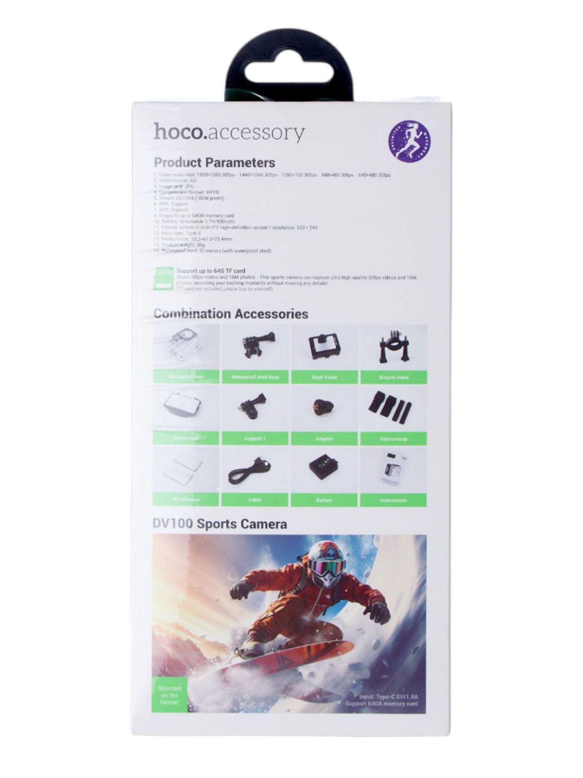 Экшн-камера DV100, 1080p видео, чёрная, 9x3x6 см., Hoco, Китай