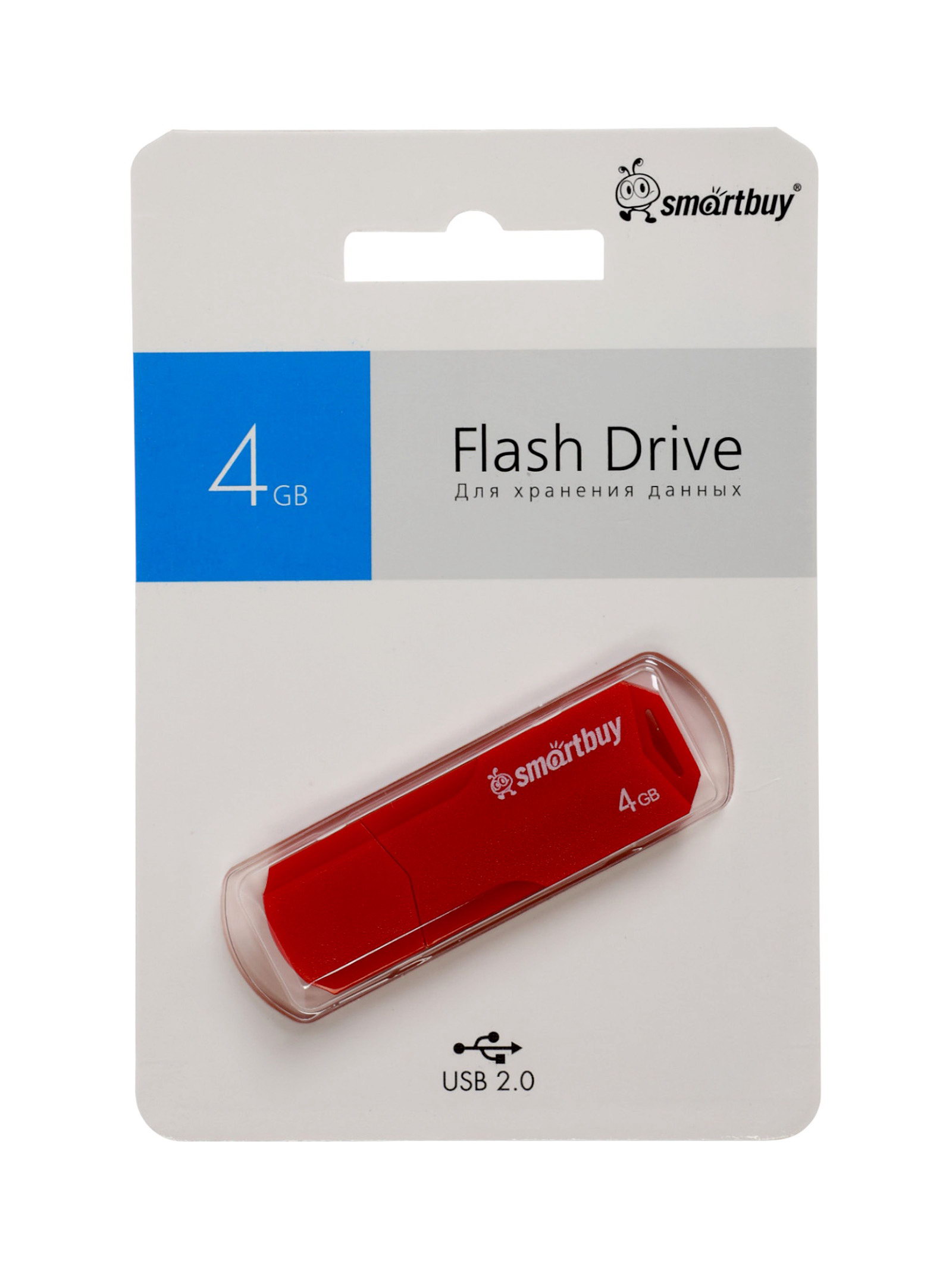 Флешка 032GB CLUE, 4 Гб, USB 2.0, чт до 15 Мб/с, зап до 8 Мб/с, красная, Smartbuy, Китай