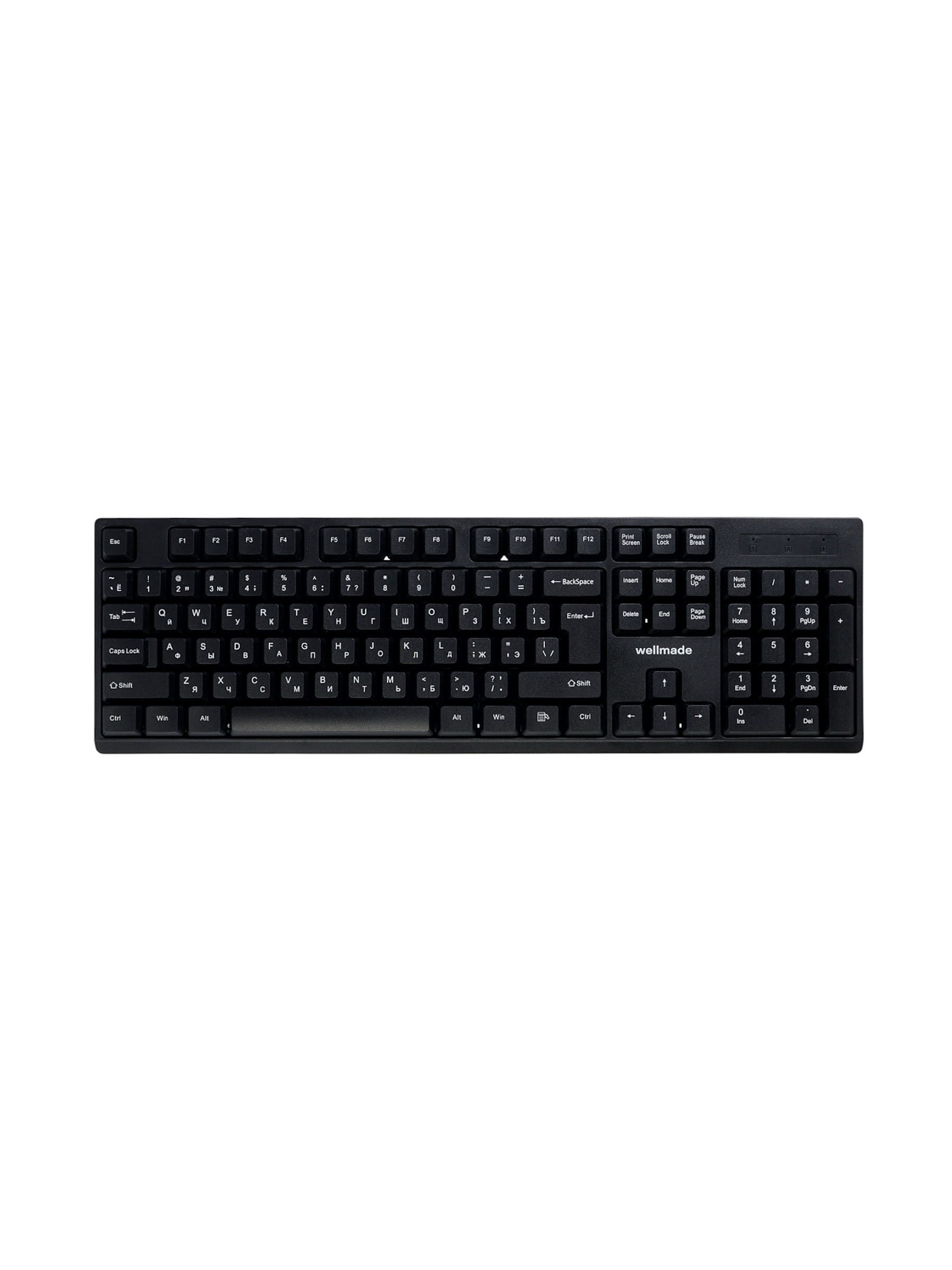 Интерфейс: Bluetooth 5.2, Type-C, USB Type-A Размер упаковки: 14 x 3.5 x 51 см. Гарантийный срок, мес.: 12 tnved: 8471606000 Температурное ограничение: Нет Тип сенсора: Оптический Механизм клавиш: Мембранная Разрешение сенсора, dpi: 1200 Подсветка: Нет Беспроводное соединение: Да Цвет: Чёрный Количество клавиш: 105 Количество кнопок мыши: 3 Игровой: Нет Комплект клавиатуры и мыши WELLMADE KM02 это стильное и функциональное решение для комфортной работы дома и в офисе. Эргономика и современный дизайн делают его удобным для ежедневного использования, сочетая практичность и эстетику. Клавиатура оснащена 105 клавишами с мембранным механизмом, обеспечивающим мягкий и тихий ход клавиш. Цифровой блок облегчает ввод числовых данных, а оптимальная раскладка снижает усталость при длительной работе. Мышь с оптическим сенсором и разрешением 1200 dpi гарантирует точное управление курсором и плавное движение по любой поверхности. | ||