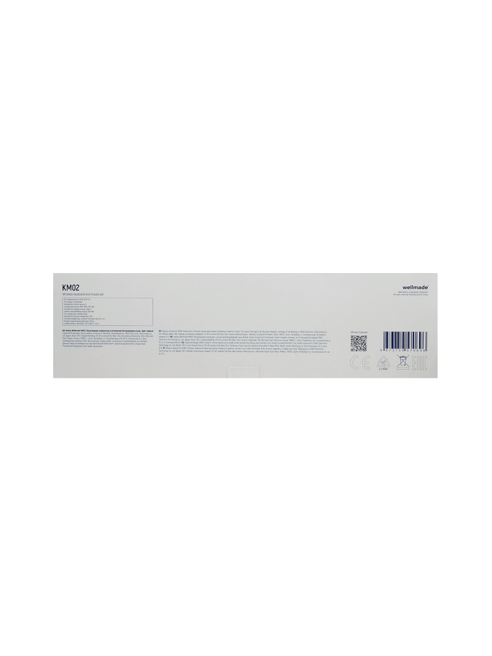 Комплект клавиатура и мышь WELLMADE KM02, беспроводной, 1200 dpi, 300 мАч, АА 1, чёрный, Китай