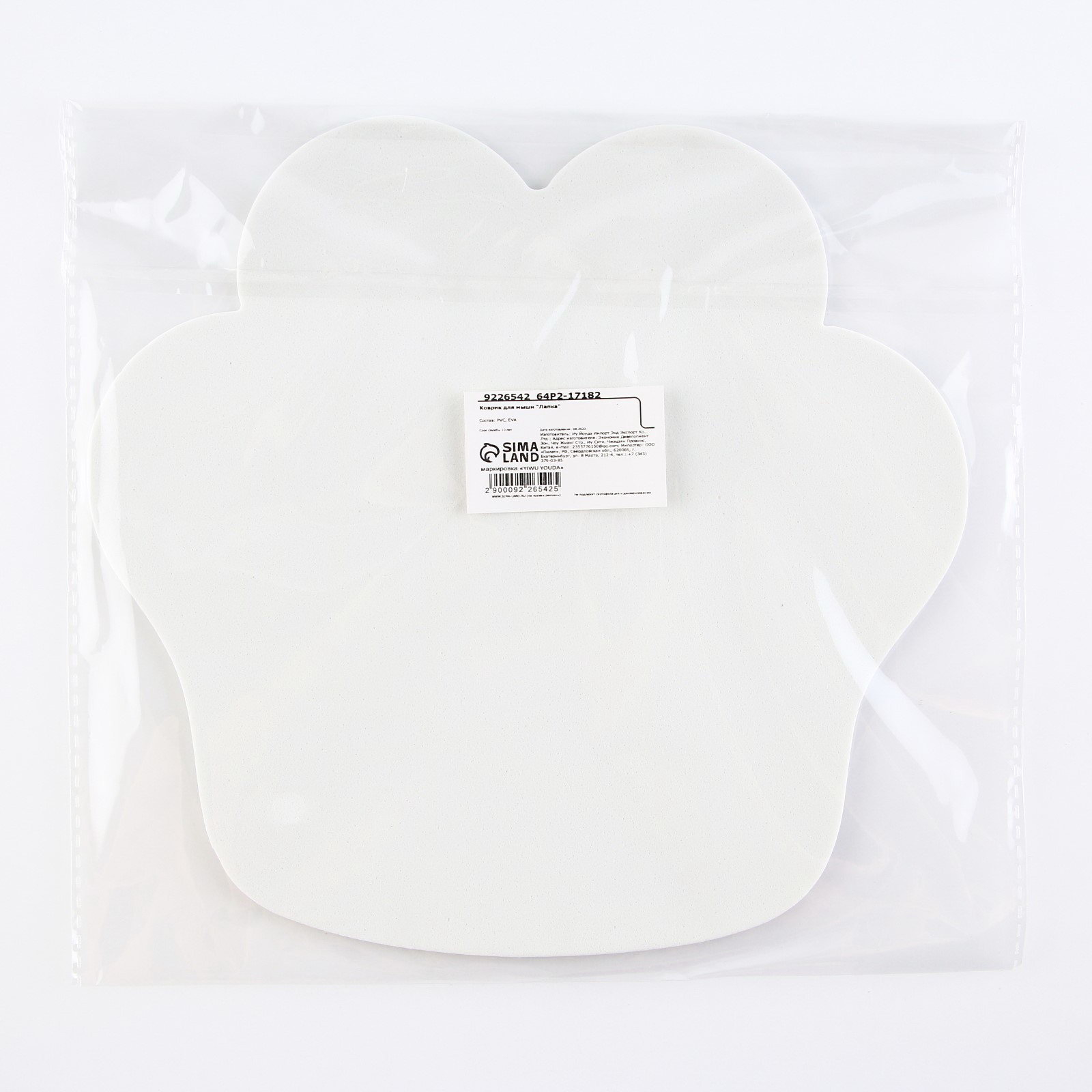Коврик для мыши "Лапка", 22 x 20 см, 20x22x0.3 см., Сима-ленд, Китай