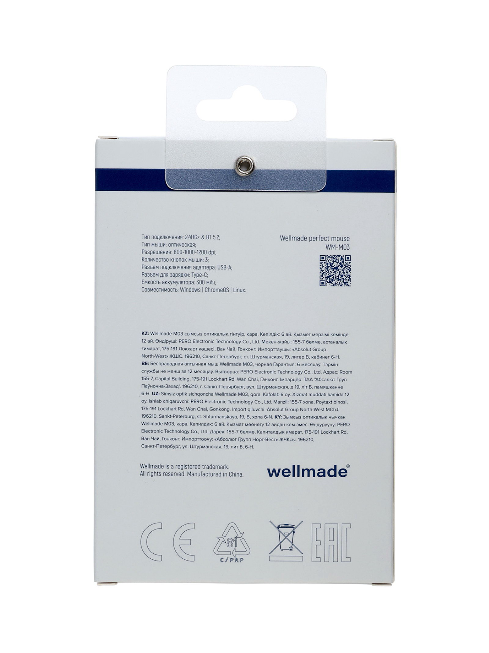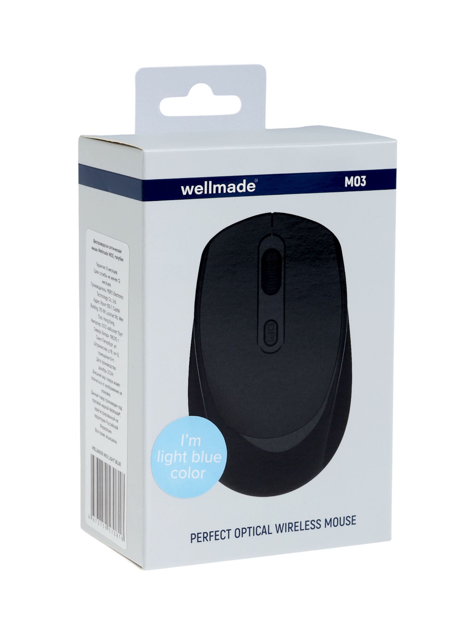 Мышь WELLMADE M03, беспроводная, оптическая, 1200 dpi, голубая, Китай