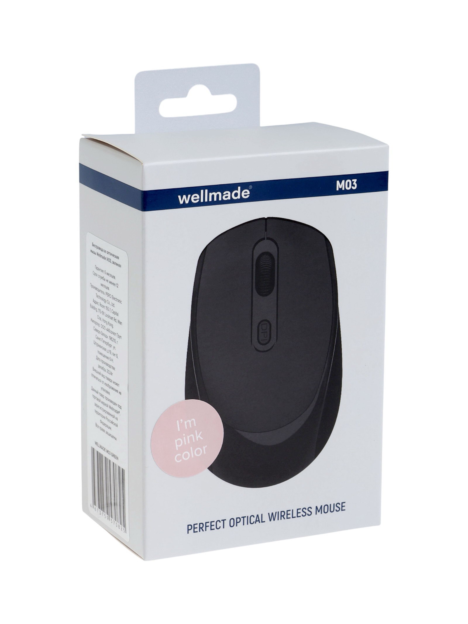 Мышь WELLMADE M03, беспроводная, оптическая, 1200 dpi, розовая, Китай
