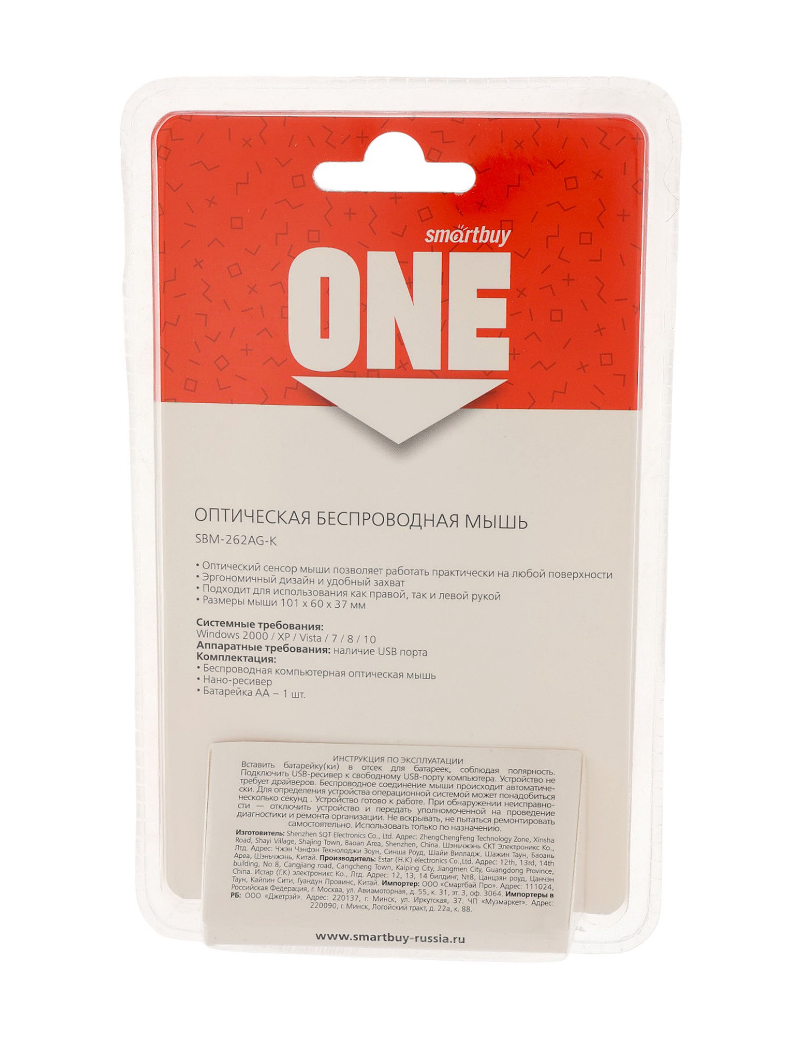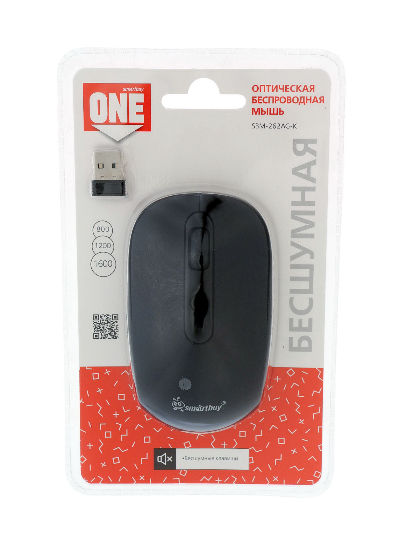 Мышь ONE 262AG, беспроводная, оптическая, 4 кнопки, 1600 dpi, USB, 1хАА, чёрная, Smartbuy, Китай