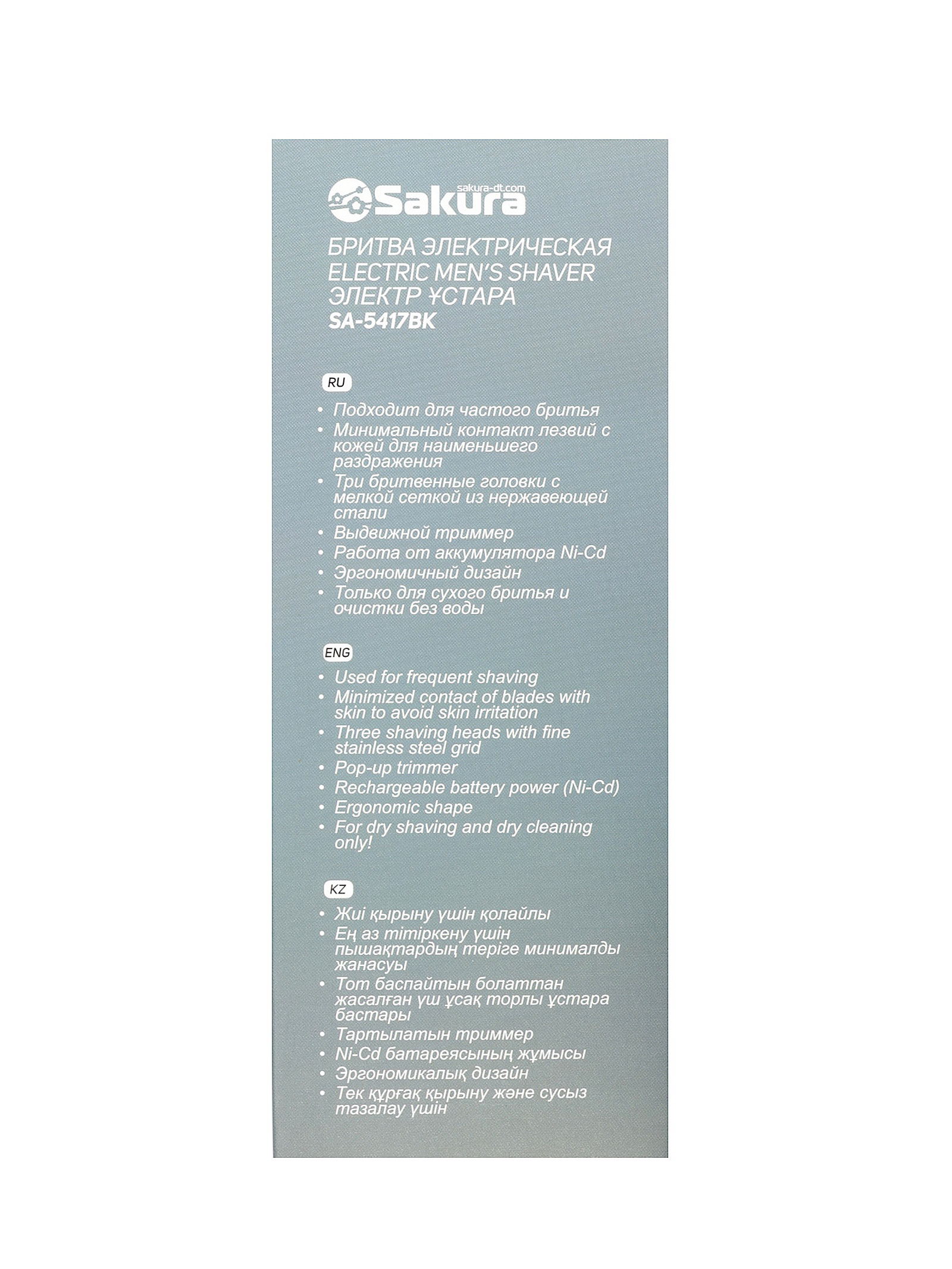 Электробритва SA-5417BK, роторная, 3 головик, триммер, чёрная, SAKURA, Китай