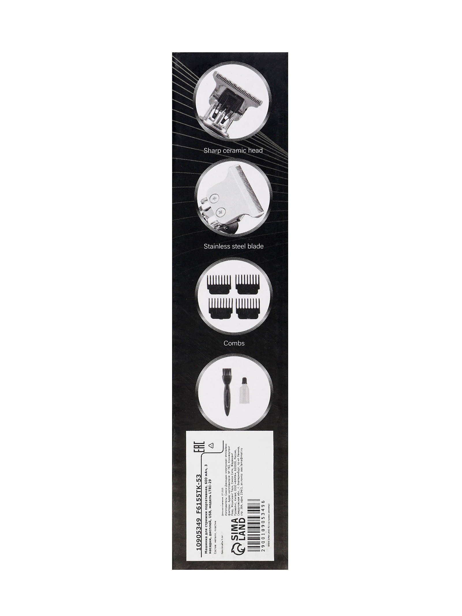 Машинка для стрижки LTRI-29, портативная, 600 мАч, 3 насадки, дисплей, USB, 6.5x18x4.5 см., Китай