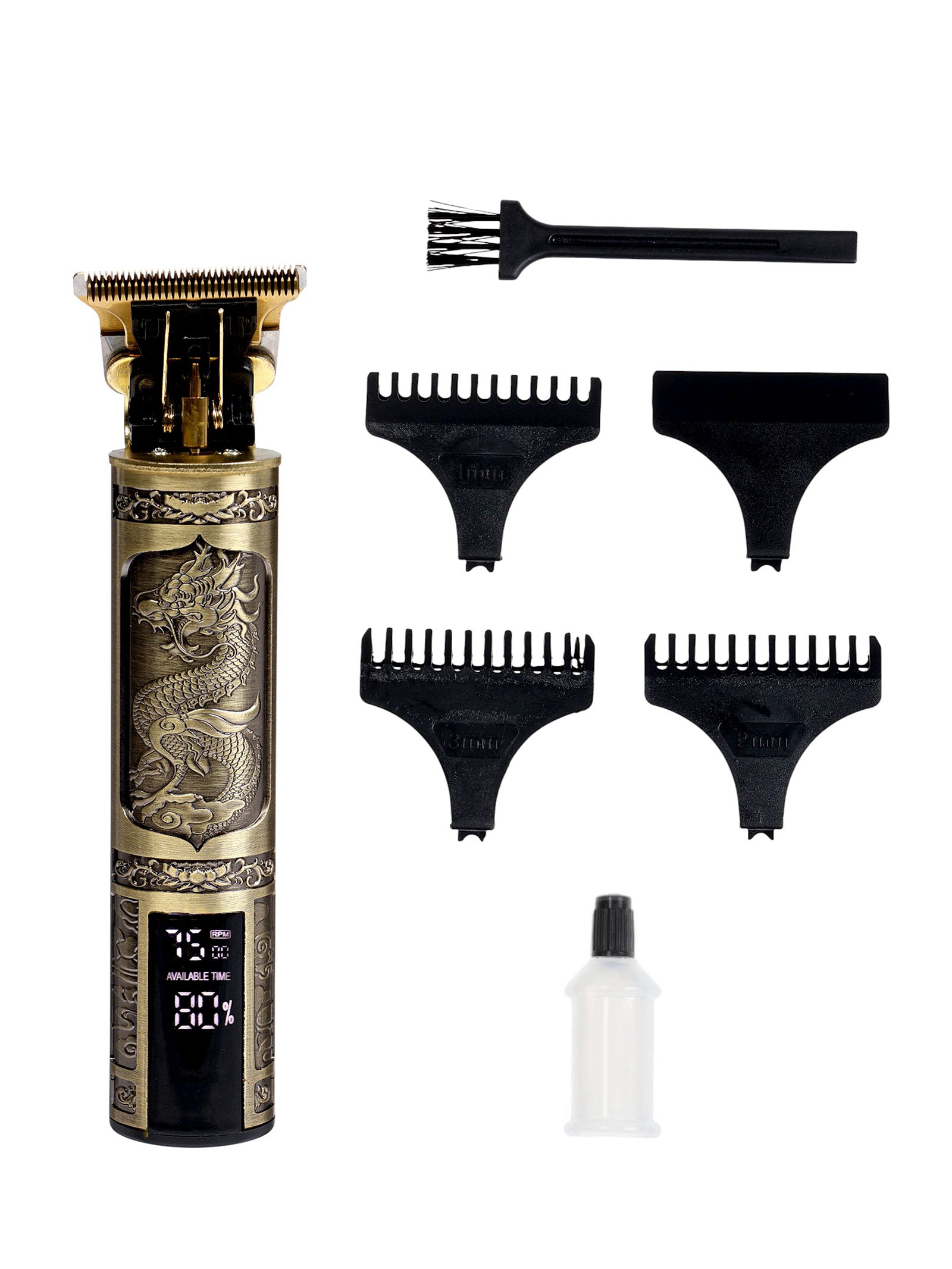 Комплектация: USB-кабель, Защитная крышка, Масло, Машинка для стрижки, Насадки, Щёточка для чистки лезвий Размер упаковки: 6.5 x 4.5 x 18.5 см. Гарантийный срок, мес.: 6 tnved: 8510200000 Дисплей: Да Тип машинки: Для стрижки Материал корпуса: Металл Цвет: Бронзовый Защитная крышка: Да Количество насадок: 3 Насадки в комплекте: Гребень Триммер: Нет Тип питания: От аккумулятора Способ чистки: Сухая Профессиональная: Да Индикатор заряда: Да Портативная машинка для стрижки в бронзовом металлическом корпусе с аккумулятором на 600 мАч и зарядкой через USB оснащена дисплеем и индикатором заряда, где три насадки-гребни позволяют точно адаптировать стрижку под индивидуальные нужды, обеспечивая профессиональный результат в компактном виде с защитной крышкой для безопасного хранения. Металлический корпус и комплектация с USB-кабелем, маслом для смазки, щёточкой для чистки лезвий и защитной крышкой делают процесс стрижки интуитивным и гигиеничным сухая чистка сохраняет лезвия острыми, а дисплей показывает уровень заряда, позволяя планировать использование без сюрпризов.