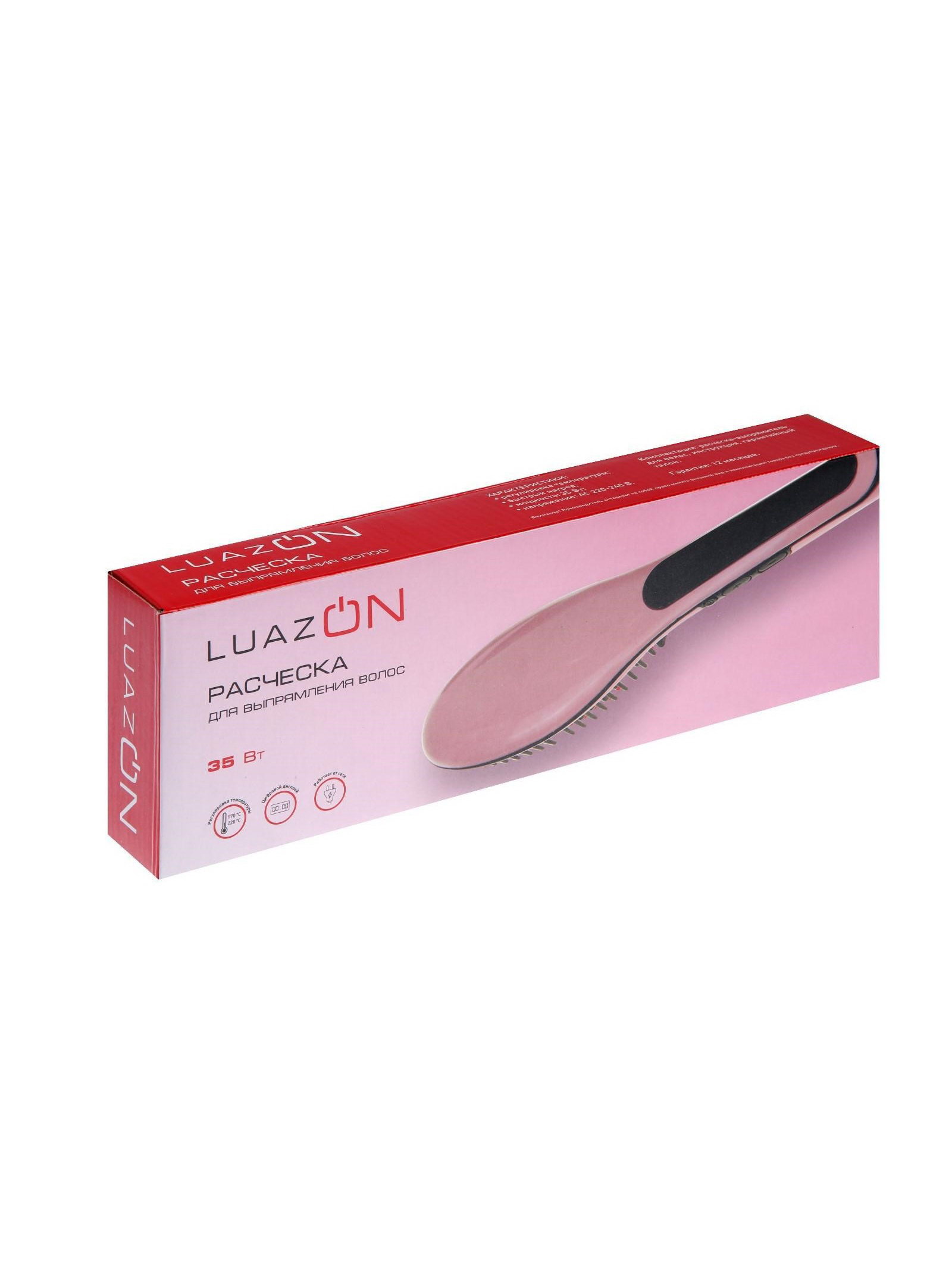 Расческа Luazon LR-01, электрическая, 35 Вт, дисплей, регулировка t, 220 В, розовая, 8x27x4.5 см., Luazon Home, Китай