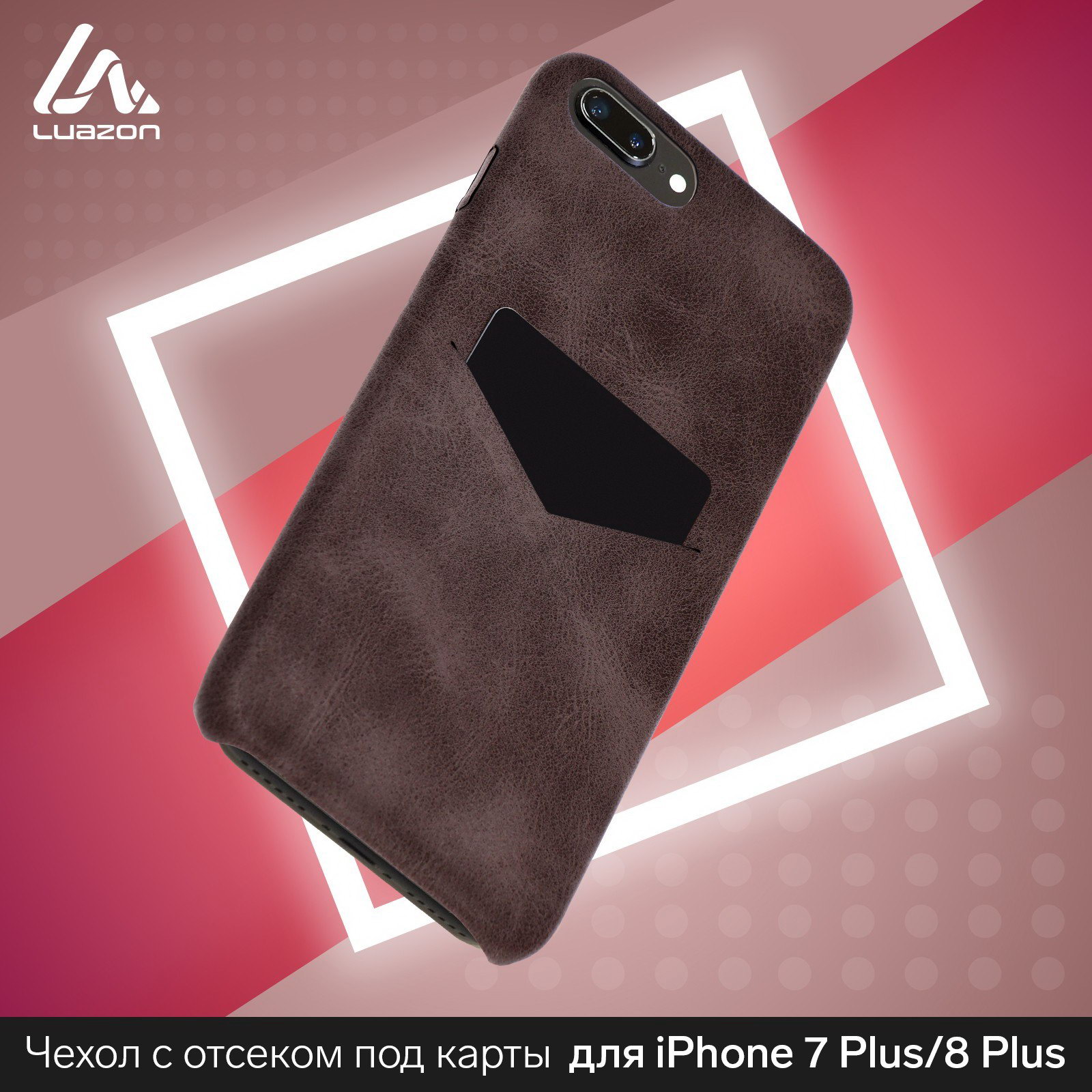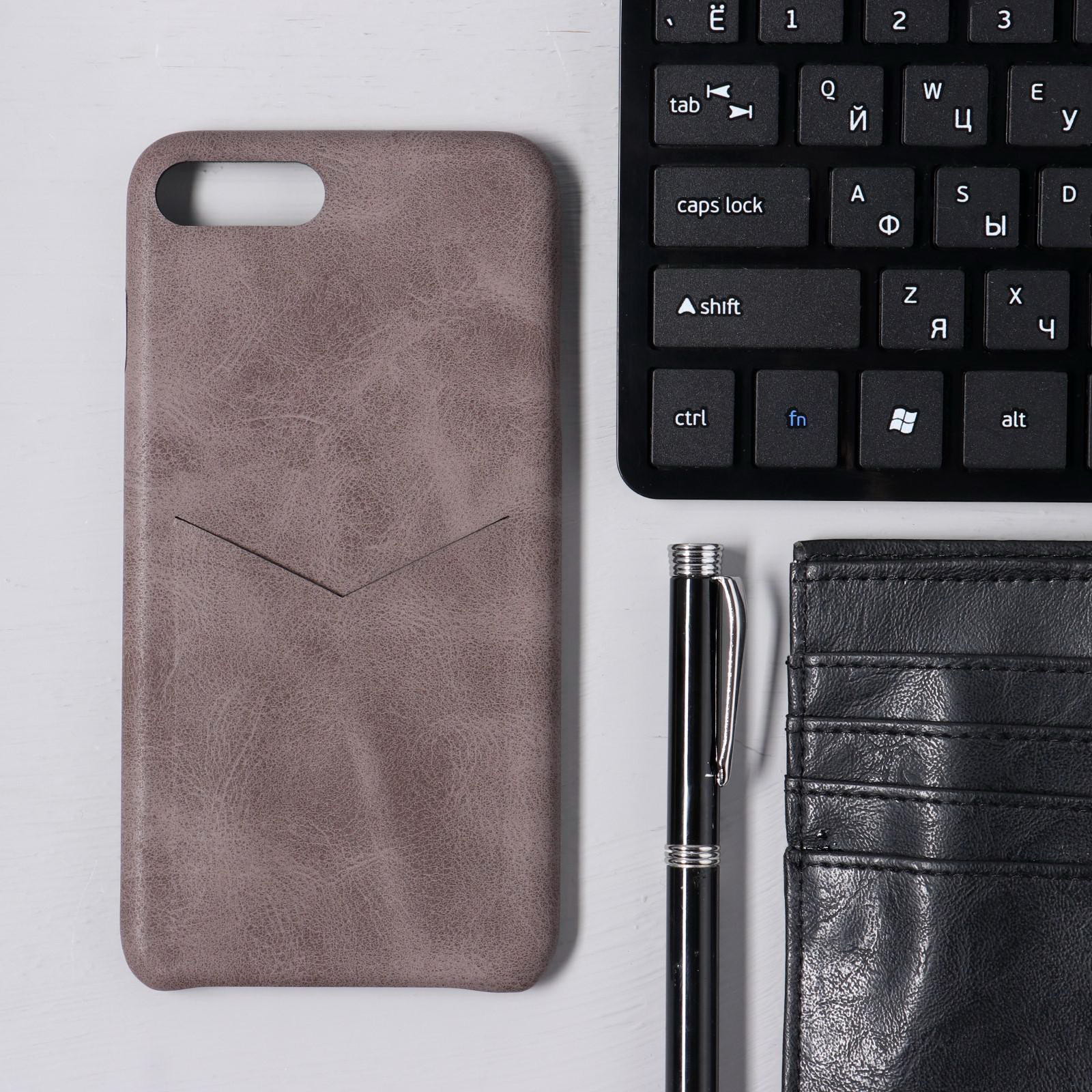 Чехол LuazON для iPhone 7 Plus/8 Plus, с отсеком под карты, кожзам, коричневый, 7.8x15.9x0.8 см., Luazon Home, Китай