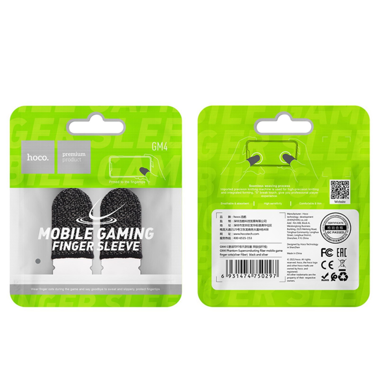 Напальчники для игр на смартфоне GM4, с защитой от пота, 2 шт, чёрный, 1x1x1 см., Hoco, Китай