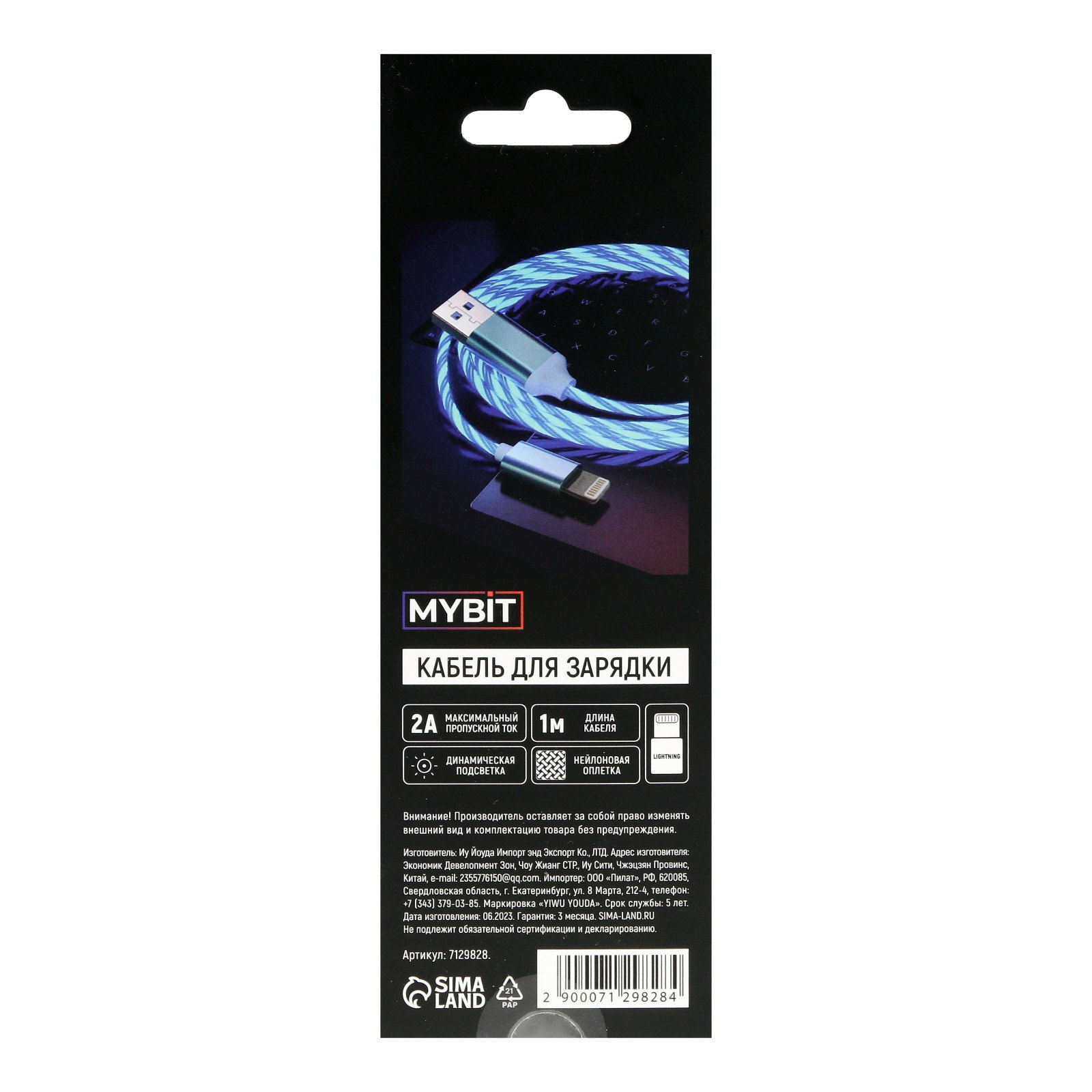 Кабель Lightning - USB, динамическая LED подсветка, 2 А, 1 м, только зарядка, 8x19.5x2.2 см., MYBIT, Китай