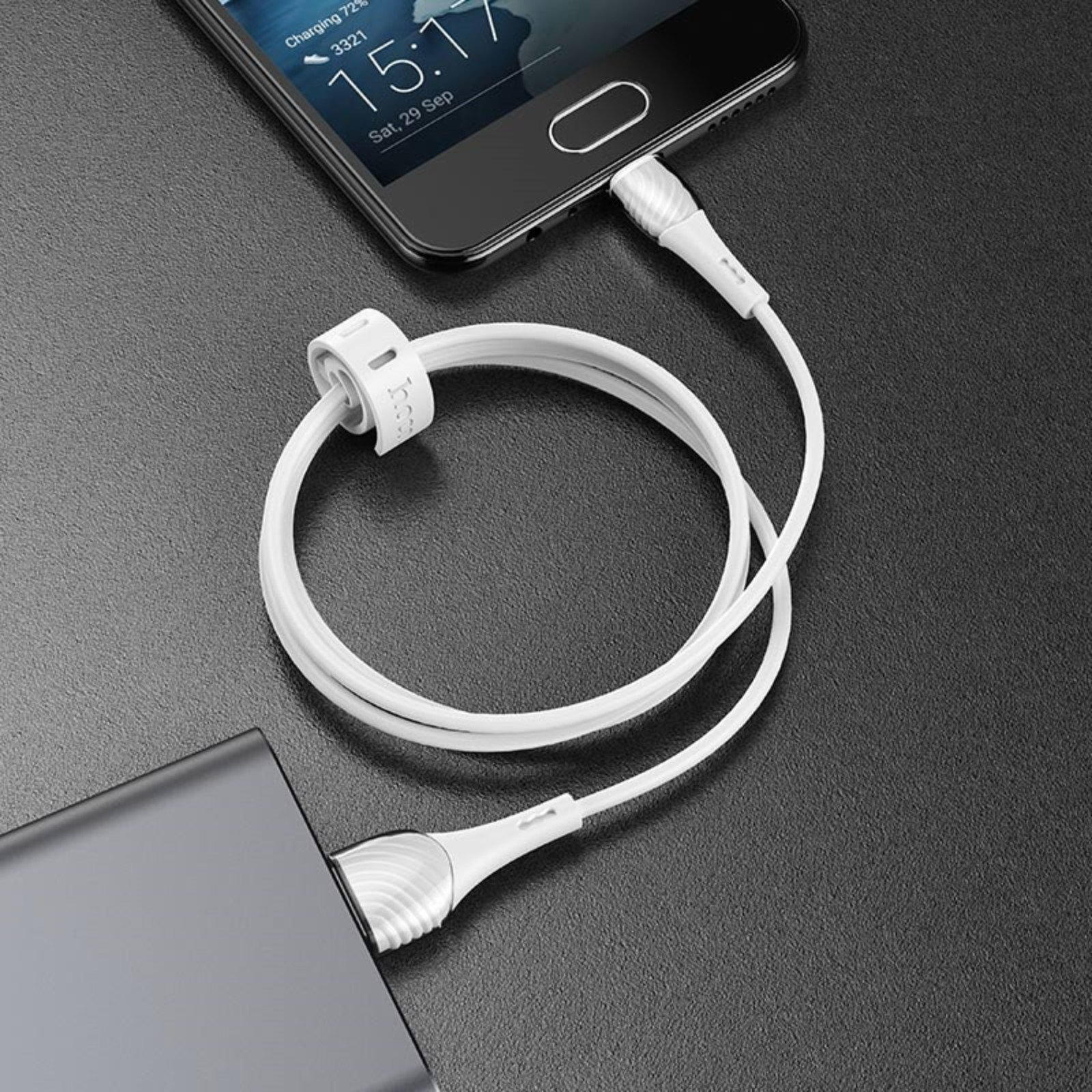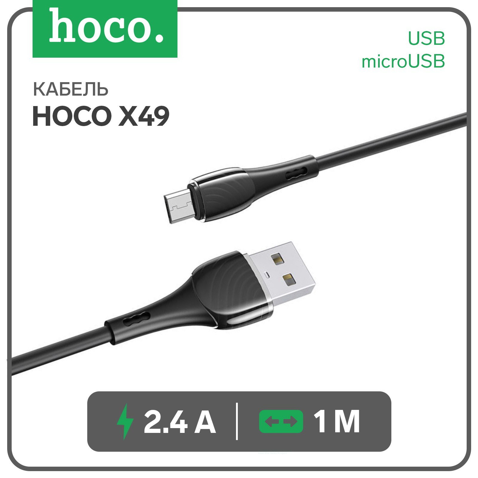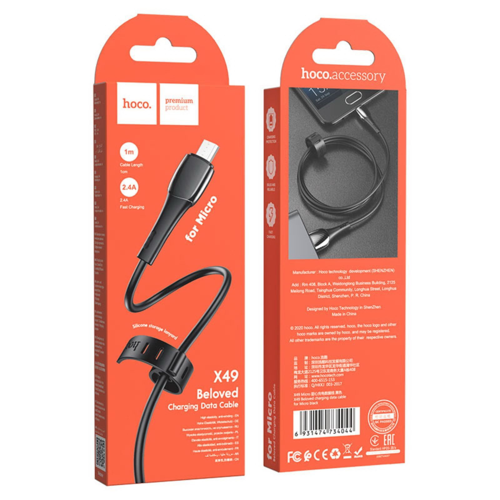 Кабель X49, microUSB - USB, 2.4 А, 1 м, PVC оплетка, клипса, черный, Hoco, Китай