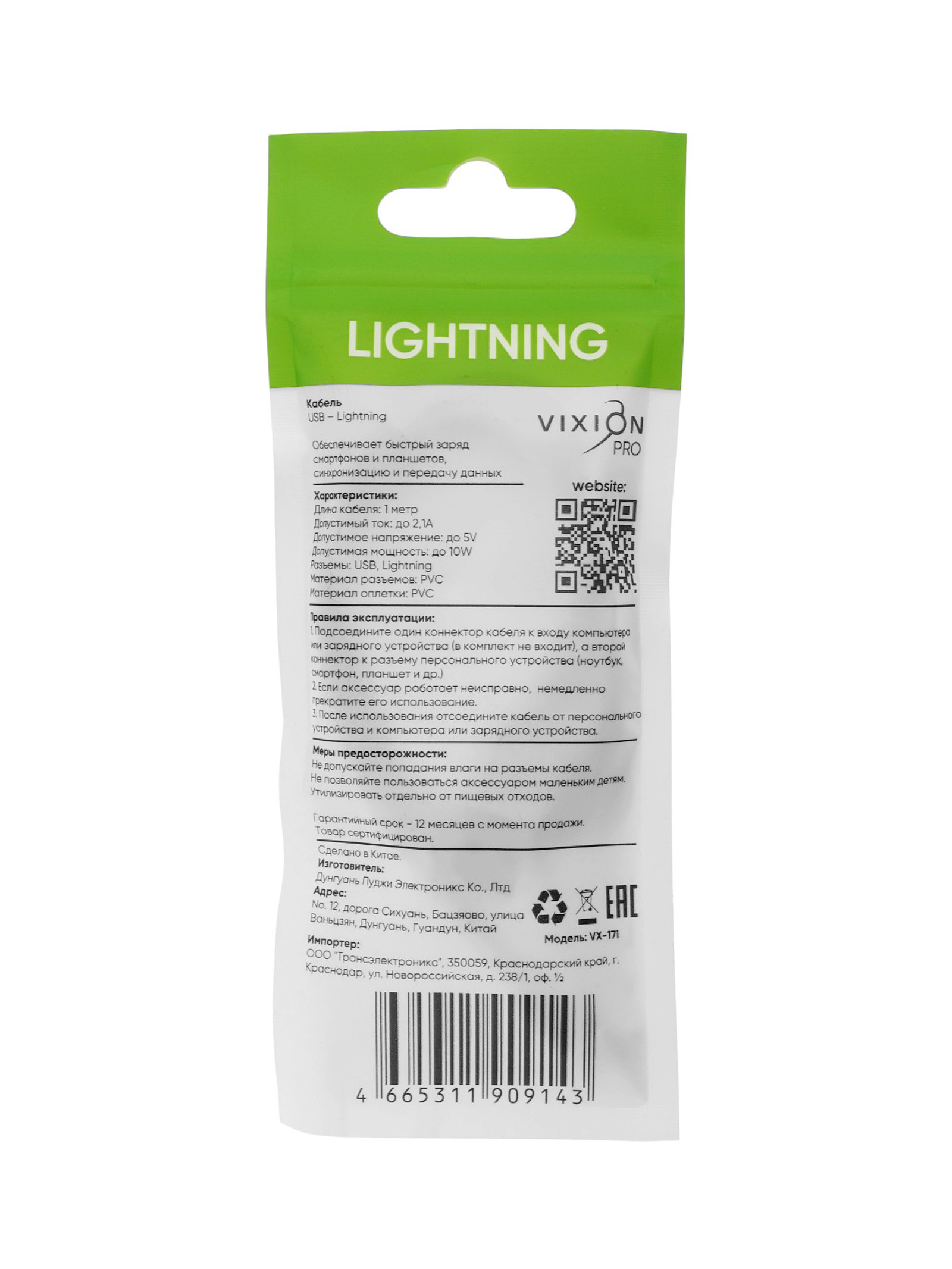 Размер упаковки: 7 x 1.5 x 16.5 см. Гарантийный срок, мес.: 6 tnved: 8544429000 Температурное ограничение: Нет Длина кабеля, см: 100 Вид: Круглый Особенности: Без особенностей Цвет: Белый Разъём мобильного устройства: Lightning Разъём внешнего устройства: USB Материал оплётки: ПВХ Сила тока, А: 2.1 Кабель VIXION? PRO? VX?17i длиной 1? м станет надёжным спутником для зарядки и синхронизации устройств с разъёмом Lightning удобный аксессуар для дома, офиса и поездок, который обеспечит стабильное соединение между вашим гаджетом и источником питания через стандартный USB?порт. | ||