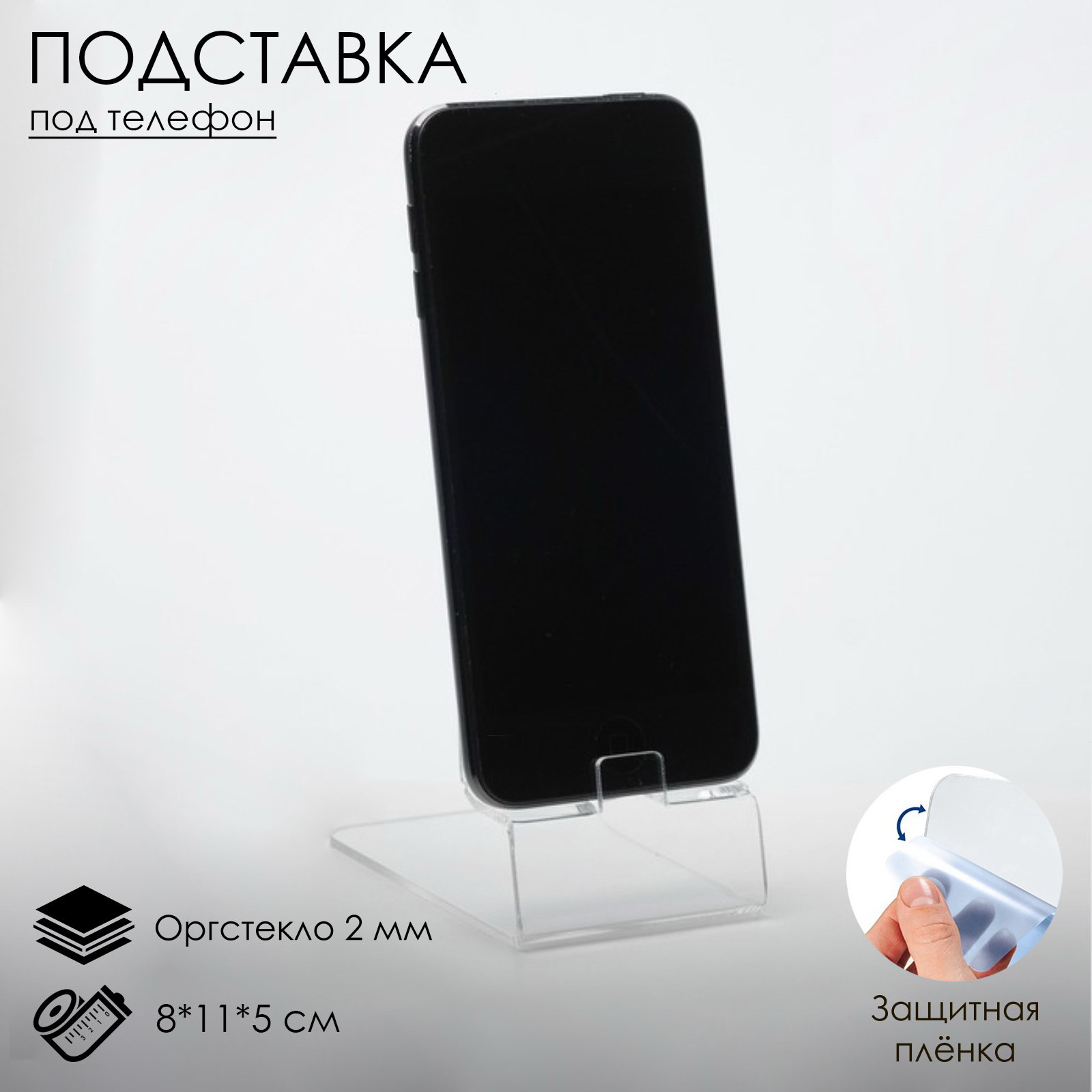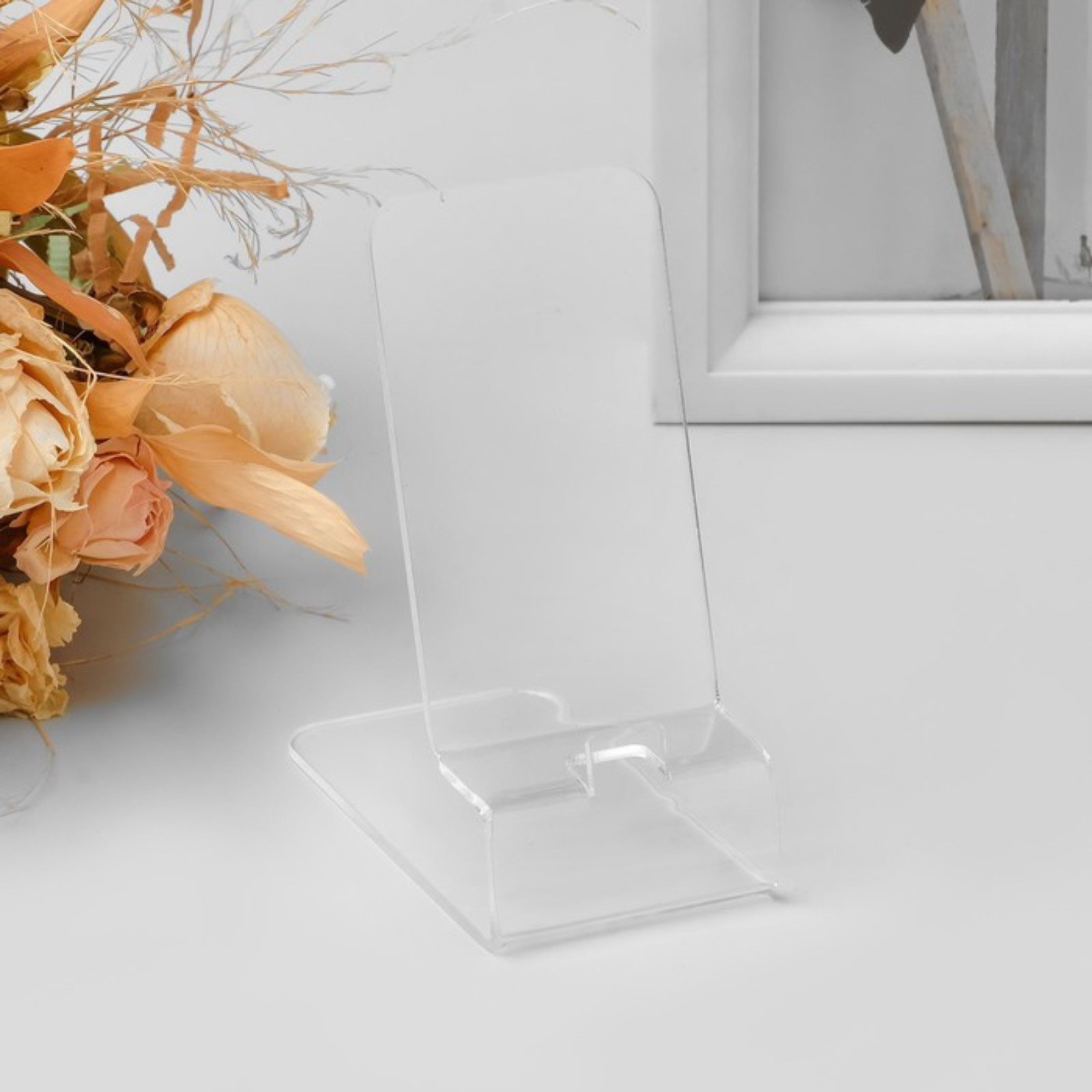 Подставка под телефон 8x12.5x5 см, оргстекло 2 мм, прозрачная, 11x8x5 см., QF, Россия