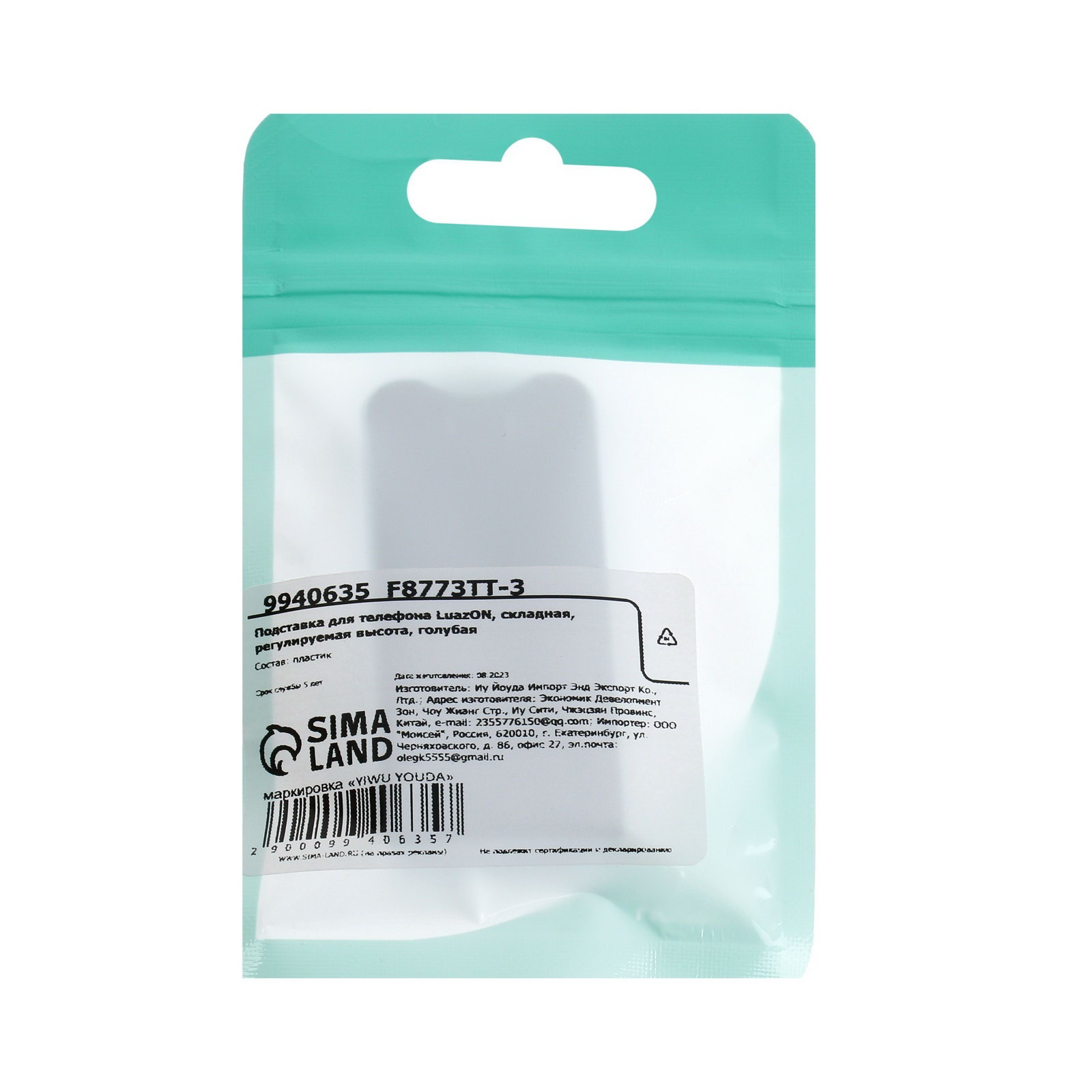 Подставка для телефона Luazon, складная, регулируемая высота, голубая, 2x5x3 см., Luazon Home, Китай