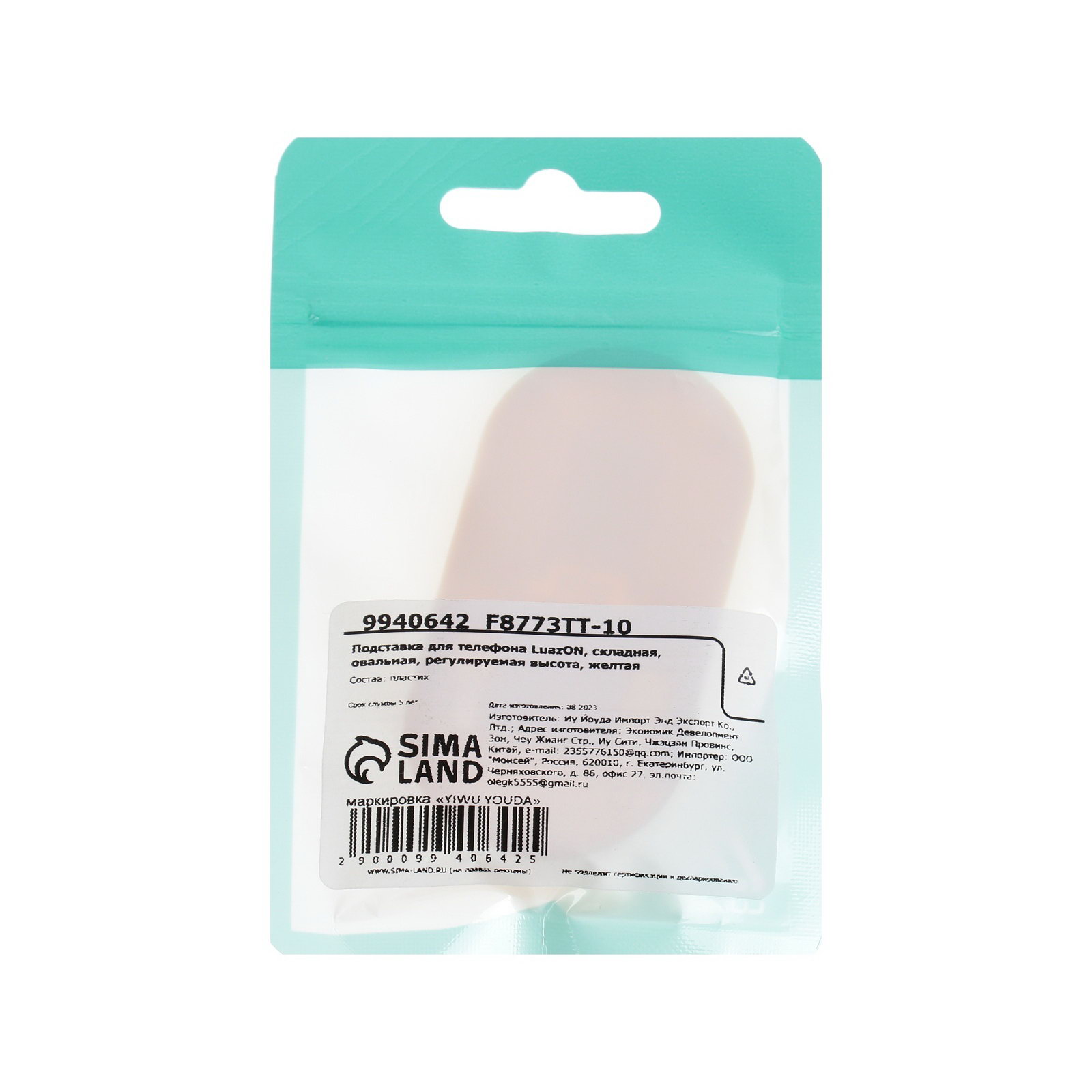Подставка для телефона Luazon, складная, овальная, регулируемая высота, желтая, 2x5x3 см., Luazon Home, Китай