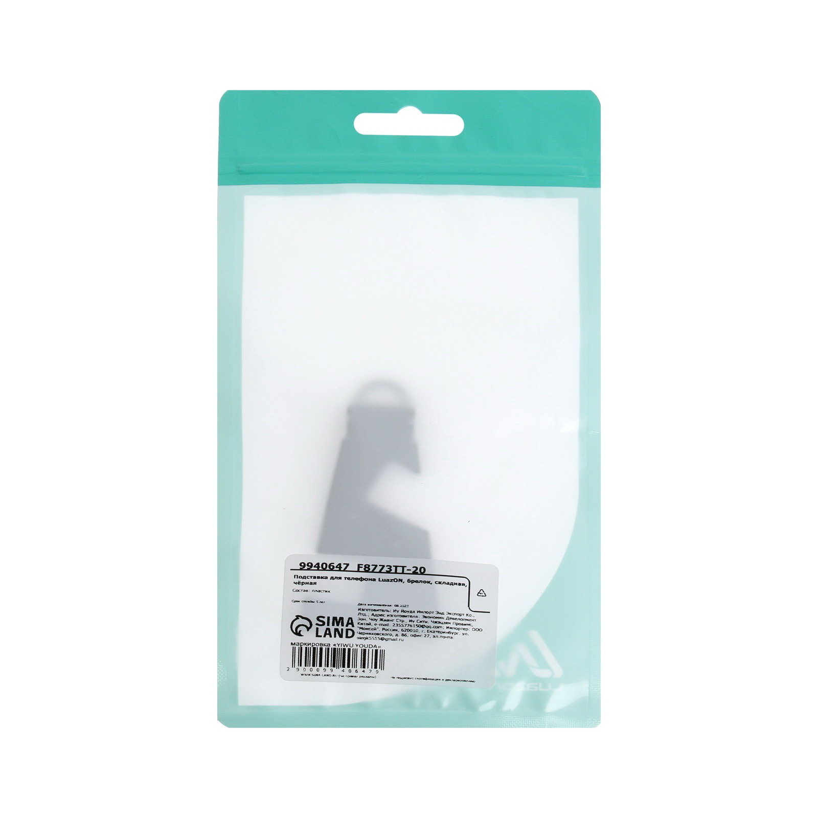Подставка для телефона Luazon, брелок, складная, чёрная, 8x8x3.5 см., Luazon Home, Китай