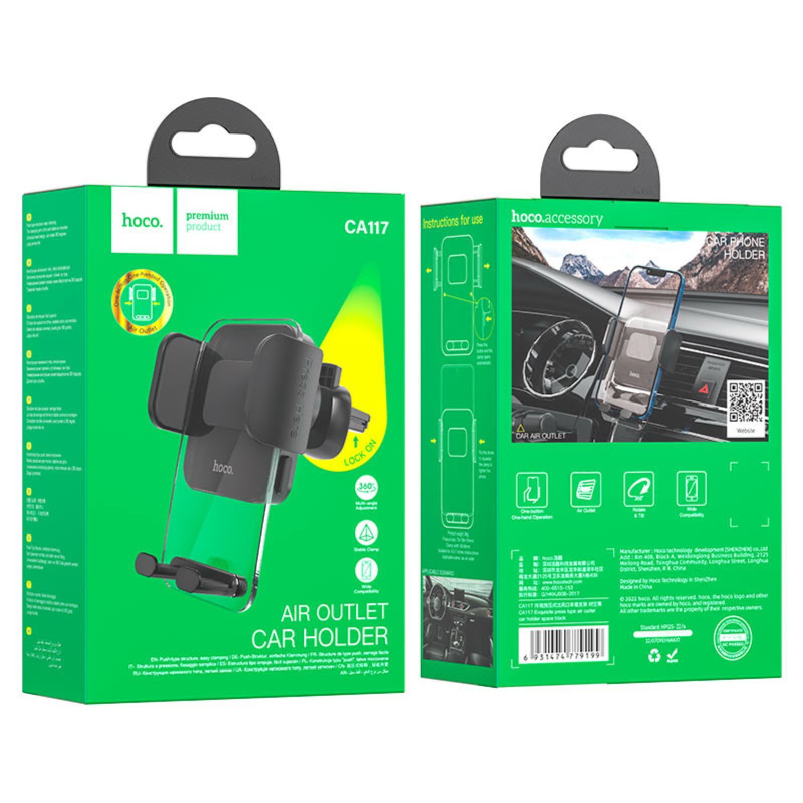 Автомобильный держатель CA117, для 4.5-7 дюймов, чёрный, 15x10x15 см., Hoco, Китай