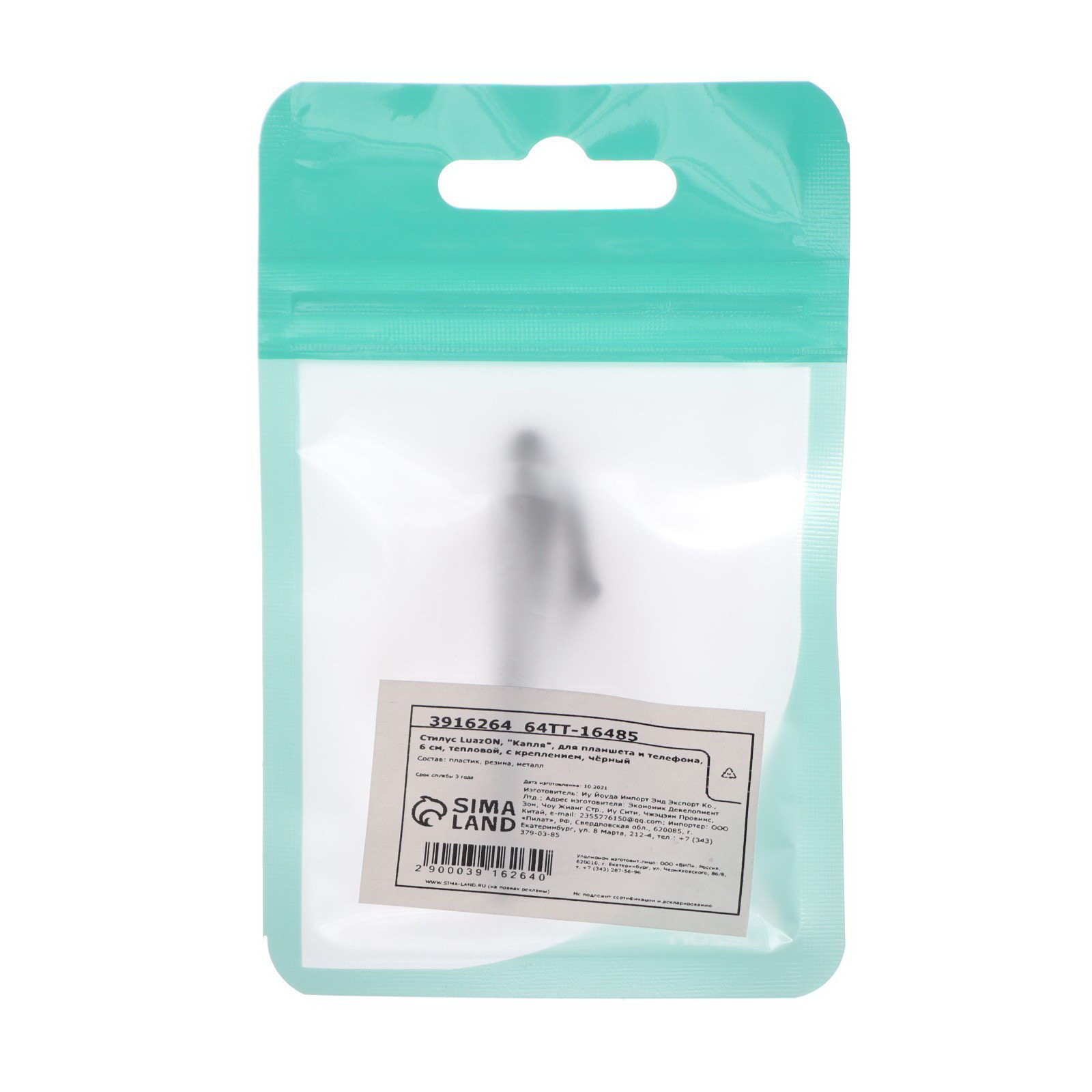Стилус Luazon, "Капля", для планшета и телефона, 6 см, тепловой, с креплением, чёрный, 0.5x6x0.5 см., Luazon Home, Китай